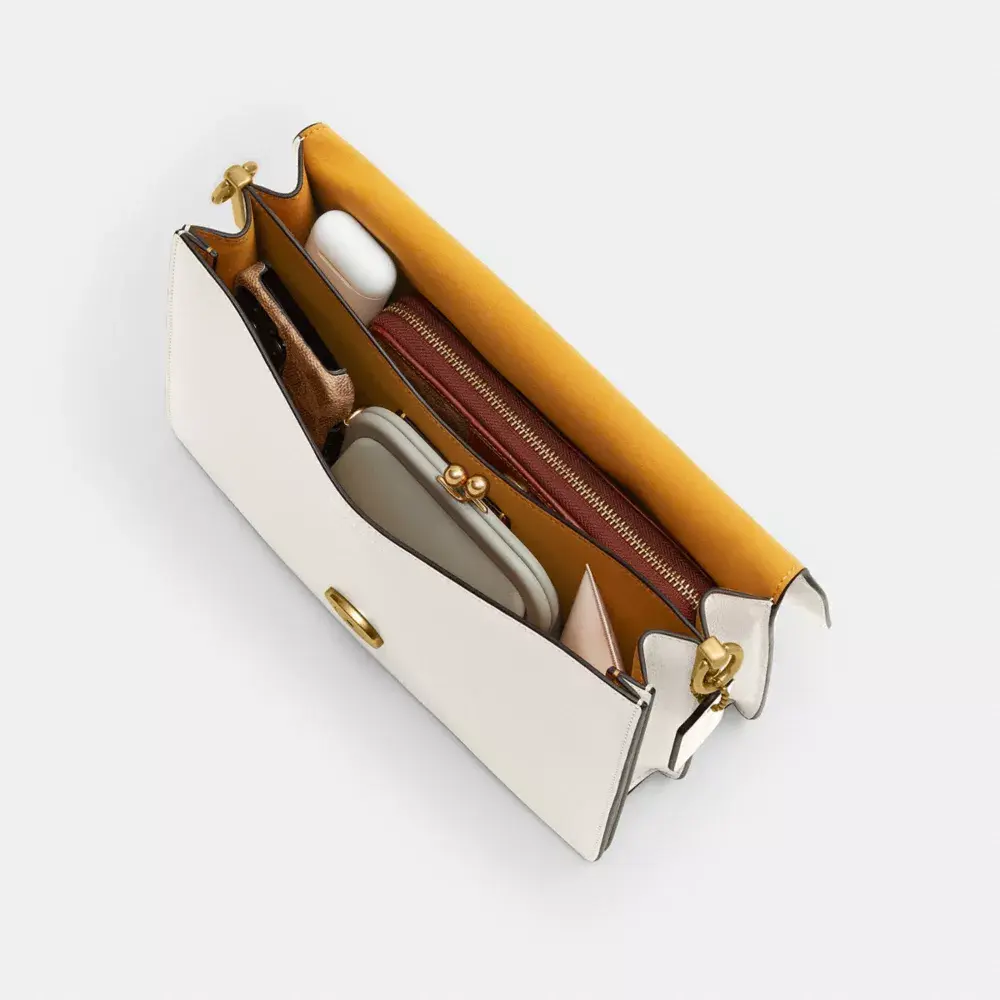 Сумка через плечо Tabby Structured Chain – современная интерпретация дизайна Coach 1970-х годов – выполнена из мягкой, драпированной натуральной кожи с лёгким блеском. Эта вместительная сумка, дополненная нашей фирменной фурнитурой, создающей культовый стиль, вместит всё необходимое, включая iPad, и оснащена внутренними многофункциональными карманами-органайзерами и удобным внешним карманом на молнии для лёгкого доступа. Универсальный дизайн дополнен тремя съёмными ремнями: её можно носить в руке, на плече – с помощью элегантного прошитого ремешка-цепочки и короткого кожаного ремешка, или через плечо – с помощью длинного кожаного ремешка, чтобы руки были свободны.