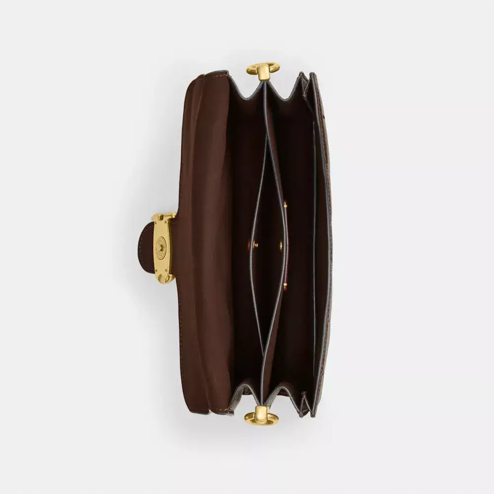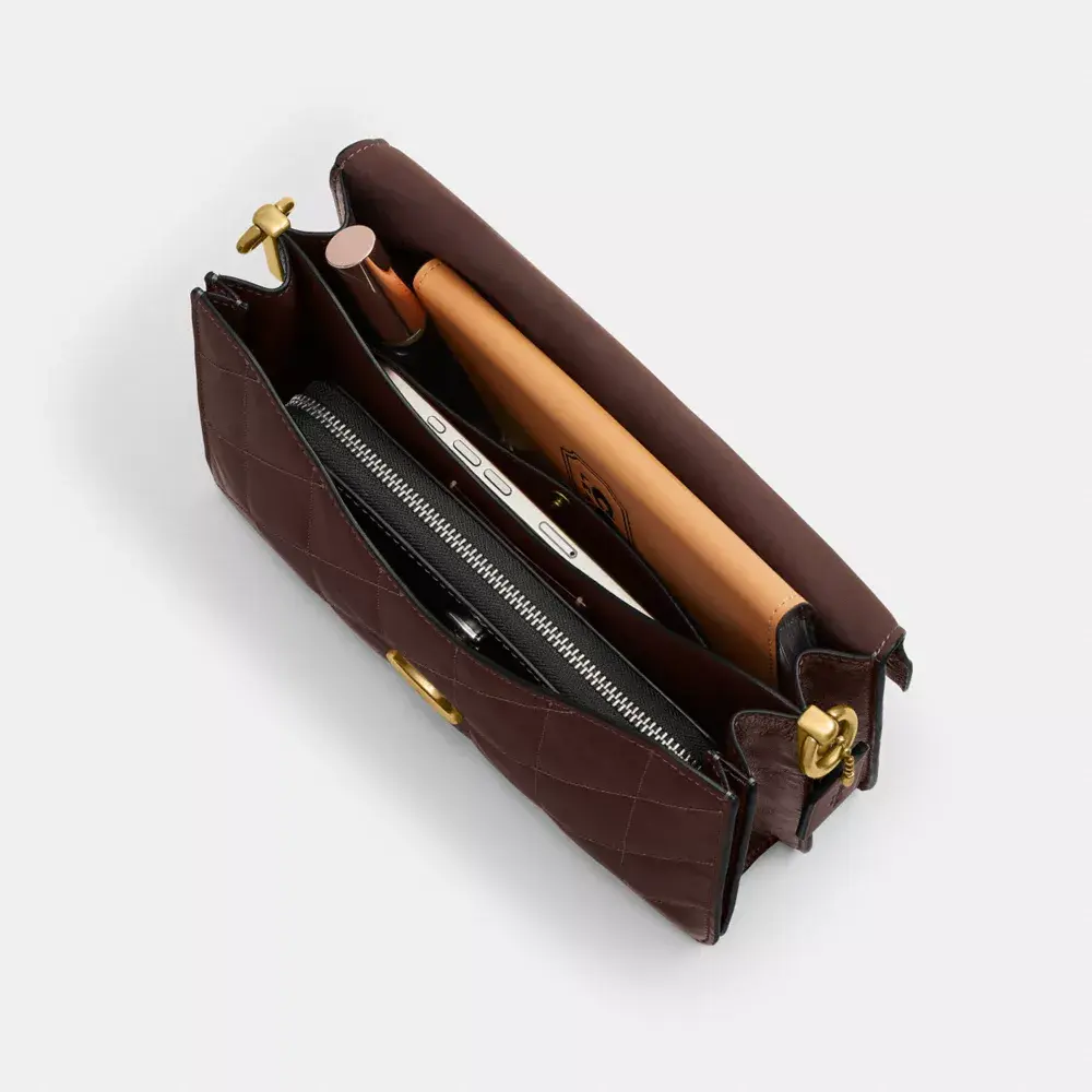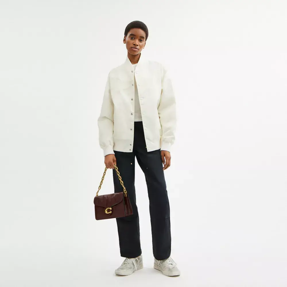 Структурированная сумка Tabby через плечо с цепочным ремешком, современная интерпретация дизайна Coach 1970-х годов, изготовлена из мягкой кожи, которая была выделана для роскошного ощущения и отполирована до глянцевого блеска. Эта компактная стеганая модель, дополненная нашей фирменной фурнитурой, создающей культовый штрих, вмещает все необходимое, имеет внутренние многофункциональные карманы-органайзеры и удобный внешний карман на молнии для легкого доступа. Универсальная конструкция включает три съемных ремня: ее можно носить в руке, на плече с помощью элегантного прошитого цепочного ремешка и короткого кожаного ремешка, или через плечо с помощью длинного кожаного ремешка, чтобы руки были свободны.