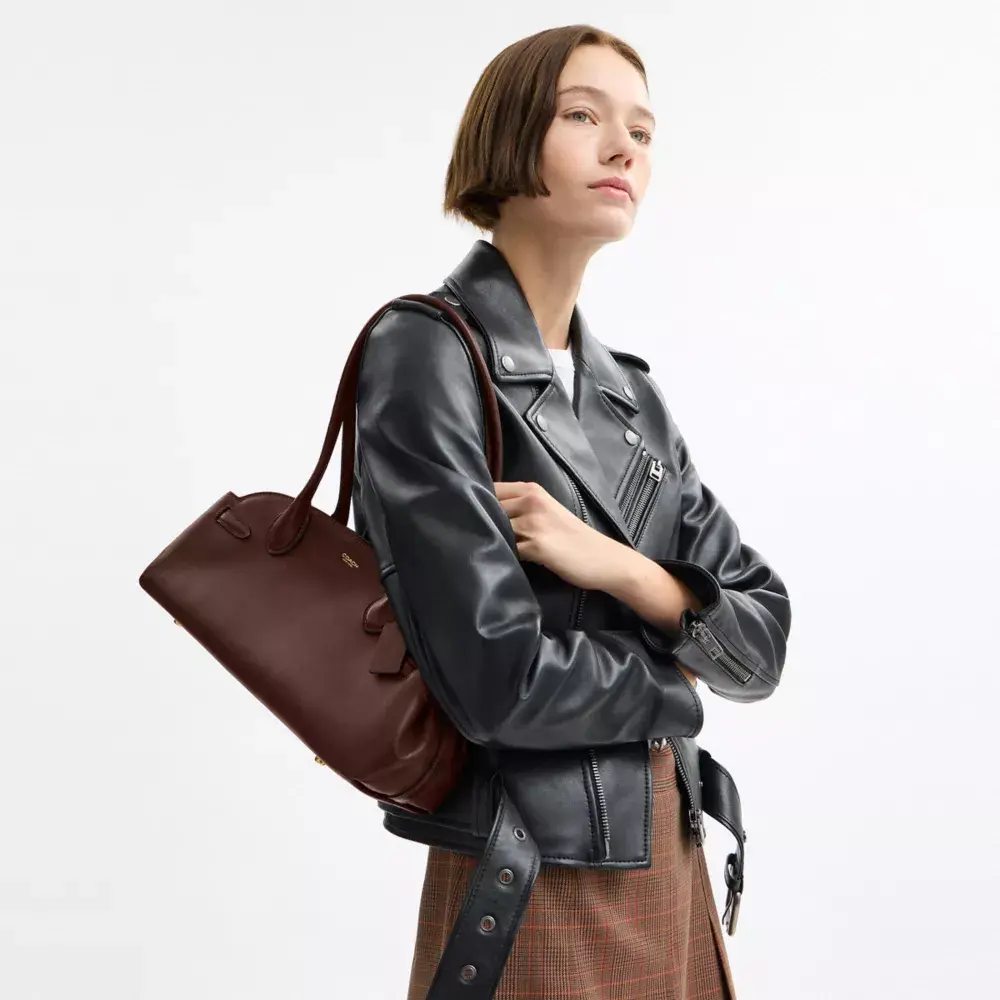 Наша сумка Empire с винтажным силуэтом воплощает дух Нью-Йорка. Удлинённая модель 34-го размера, изготовленная из мягкой кожи, выделанной для создания роскошного ощущения и отполированной до глянцевого блеска, имеет просторное внутреннее пространство с многофункциональным карманом для мелочей и шнурком с карабином для крепления брелока или сумки. Сумка дополнена внутренними пряжками для расширения боковых вставок, когда вам нужно больше места, и длинными стильными ремнями, которые идеально ложатся на плечо.
