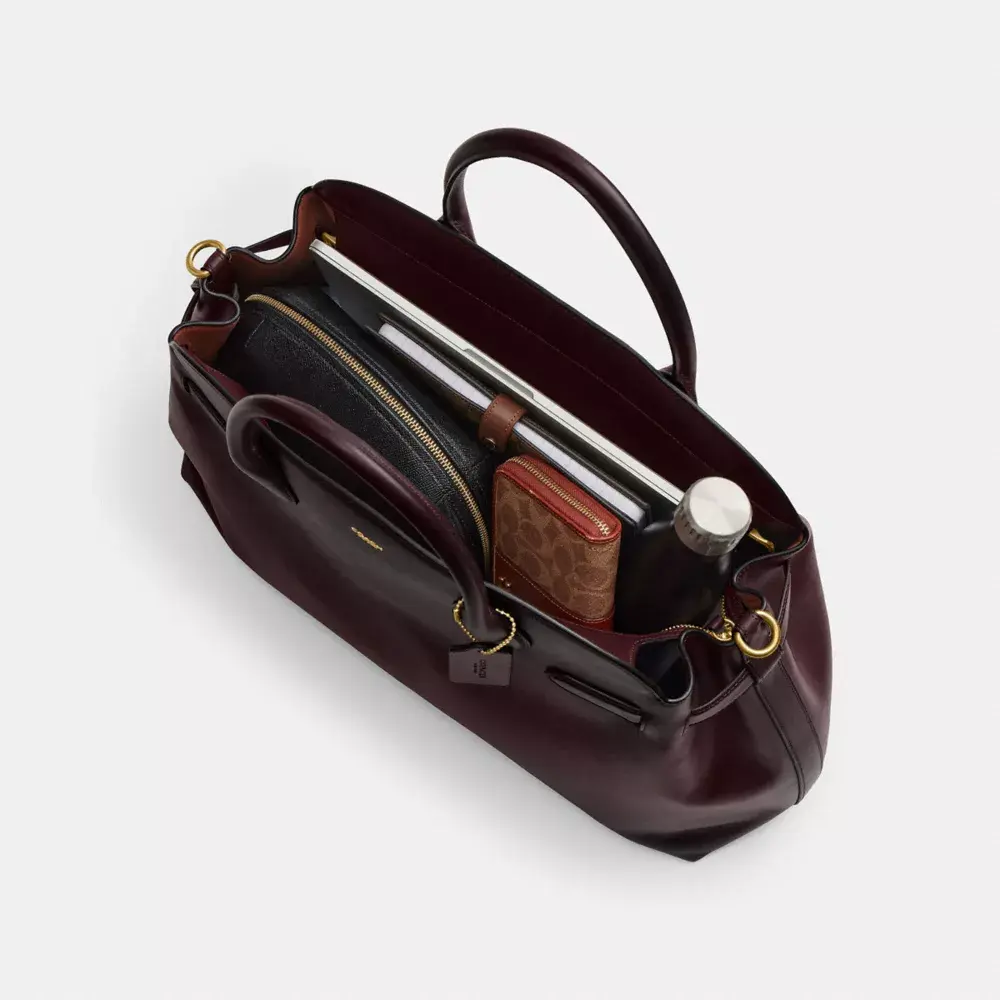 Сумка Empire с винтажным силуэтом воплощает дух Нью-Йорка. Сумка изготовлена из натуральной кожи с красивой текстурой и приятной на ощупь, а размер 48 идеально подходит для повседневного использования или поездок на несколько дней. Вместительное открытое отделение вмещает 16-дюймовый ноутбук, а карман на молнии — все необходимое. Сумка оснащена застежкой-молнией и внутренними пряжками для расширения боковых вставок, что увеличивает её вместимость. Сумку можно носить за верхние ручки или, используя съёмный ремешок через плечо, без помощи рук.