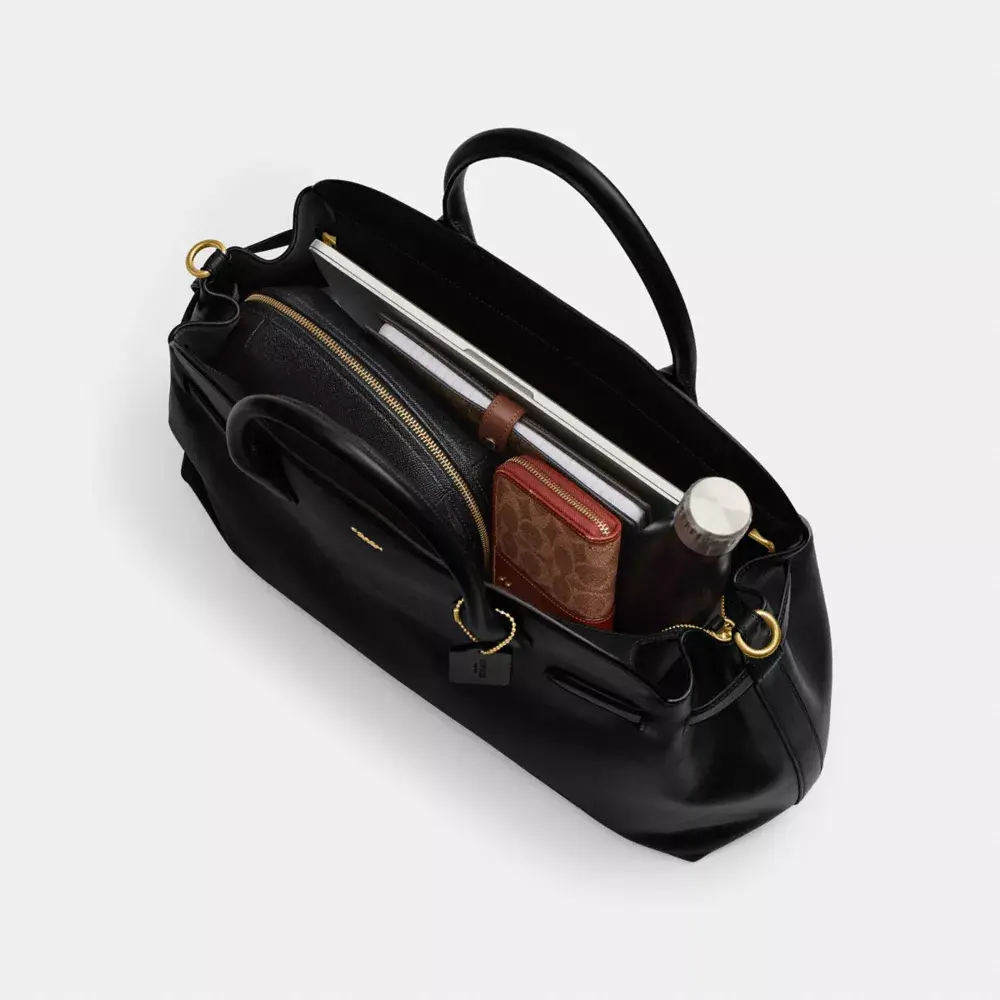 Сумка Empire с винтажным силуэтом воплощает дух Нью-Йорка. Сумка изготовлена из натуральной кожи с красивой текстурой и приятной на ощупь, а размер 48 идеально подходит для повседневного использования или поездок на несколько дней. Вместительное открытое отделение вмещает 16-дюймовый ноутбук, а карман на молнии — все необходимое. Сумка оснащена застежкой-молнией и внутренними пряжками для расширения боковых вставок, что увеличивает её вместимость. Сумку можно носить за верхние ручки или, используя съёмный ремешок через плечо, без помощи рук.