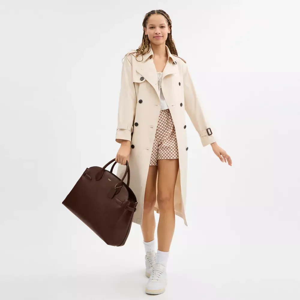 Сумка Empire с винтажным силуэтом воплощает дух Нью-Йорка. Сумка изготовлена из натуральной кожи с красивой текстурой и приятной на ощупь, а размер 48 идеально подходит для повседневного использования или поездок на несколько дней. Вместительное открытое отделение вмещает 16-дюймовый ноутбук, а карман на молнии — все необходимое. Сумка оснащена застежкой-молнией и внутренними пряжками для расширения боковых вставок, что увеличивает её вместимость. Сумку можно носить за верхние ручки или, используя съёмный ремешок через плечо, без помощи рук.