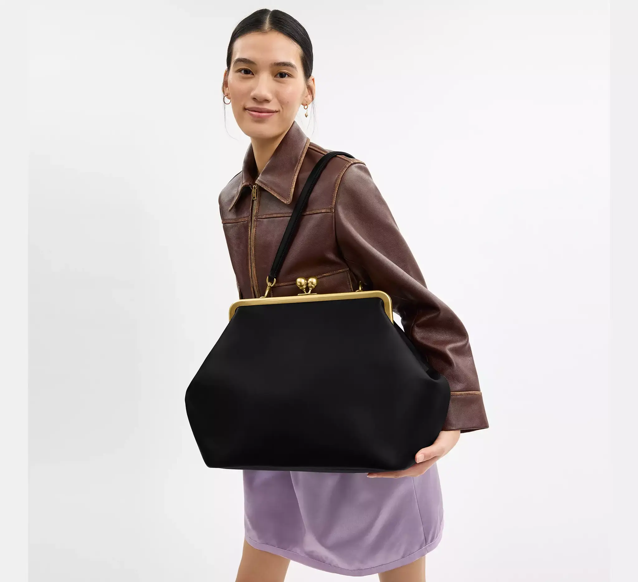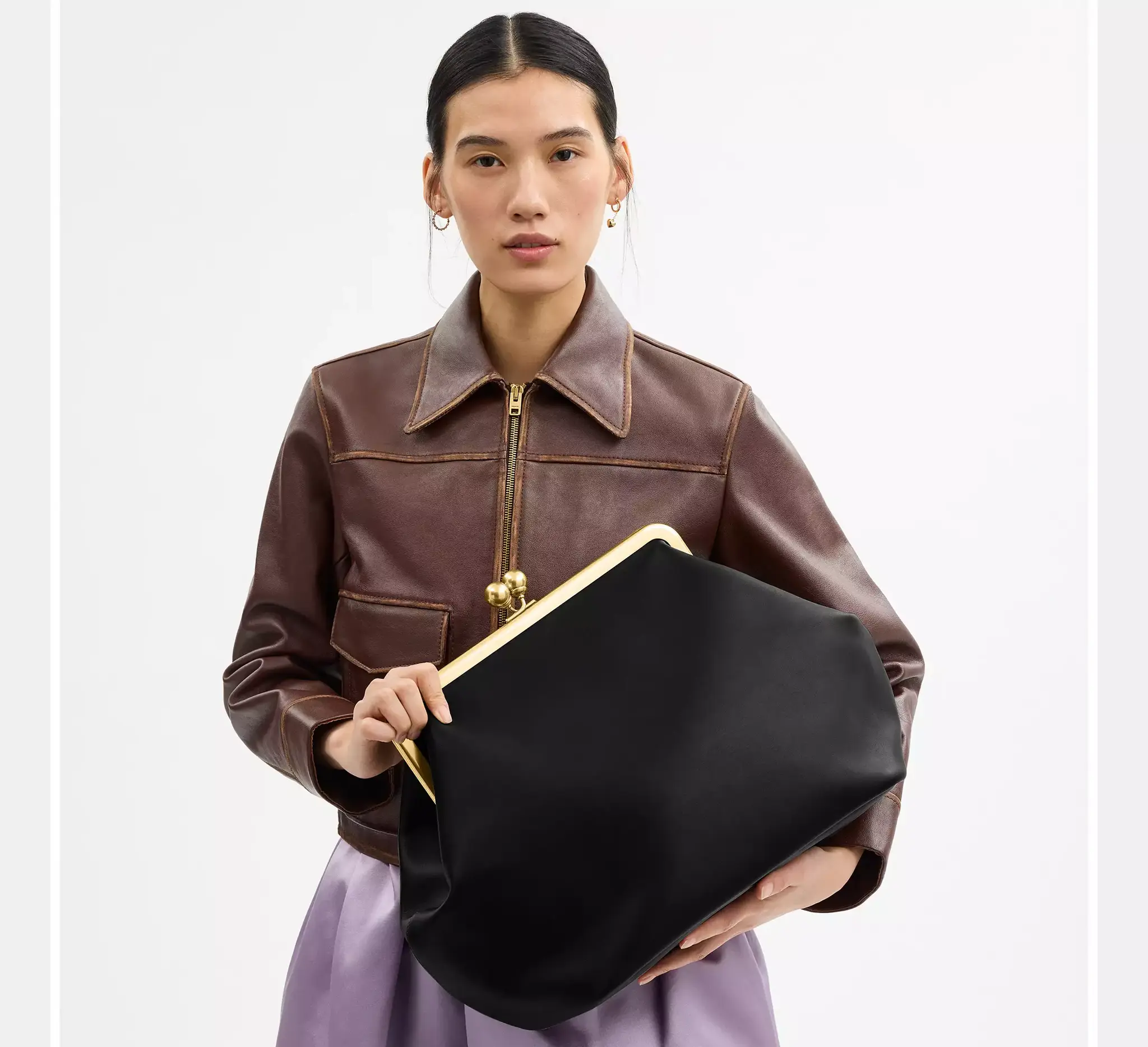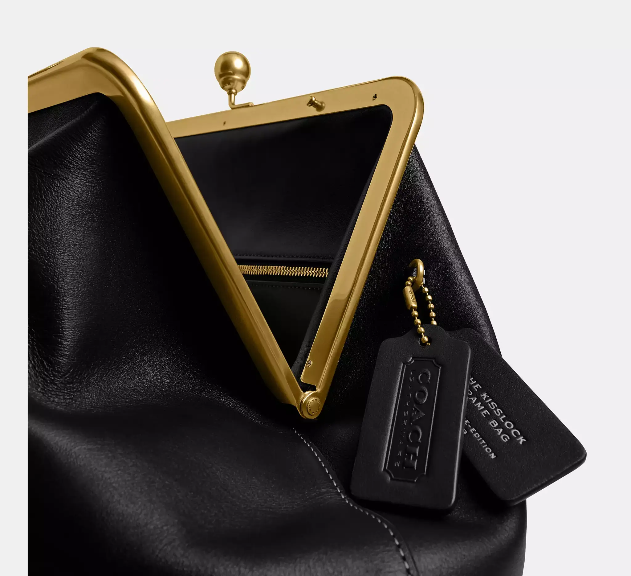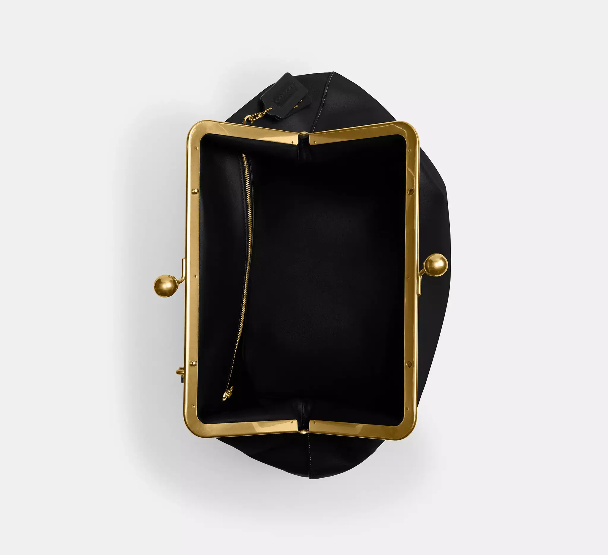 Большая сумка Kisslock Frame основана на фирменном стиле “Cash & Carry” 1969 года, разработанном первым креативным директором Coach Бонни Кэшин. Этот силуэт из очень мягкой дубленой кожи, переосмысленный как вместительная сумка, включает в себя нашу культовую застежку-носик в стиле винтажных кошельков, внутренний карман на молнии для хранения основных вещей и съемный кожаный ремешок для переноски через плечо.