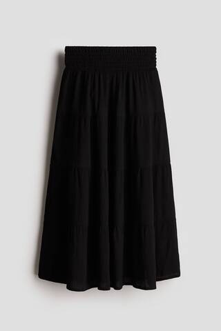 Длинная юбка из мягкой, тонкой вискозной ткани с широкими сборками на талии и ярусами для дополнительного объема.