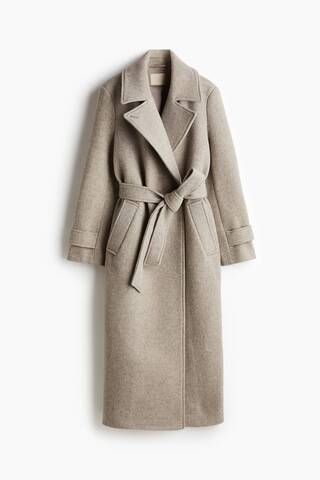 H&M Длинное пальто из шерстяной смеси с поясом, бежевый меланж
