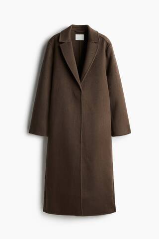 H&M Длинное пальто ручной работы из смесовой шерсти, темно-коричневый