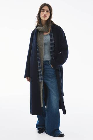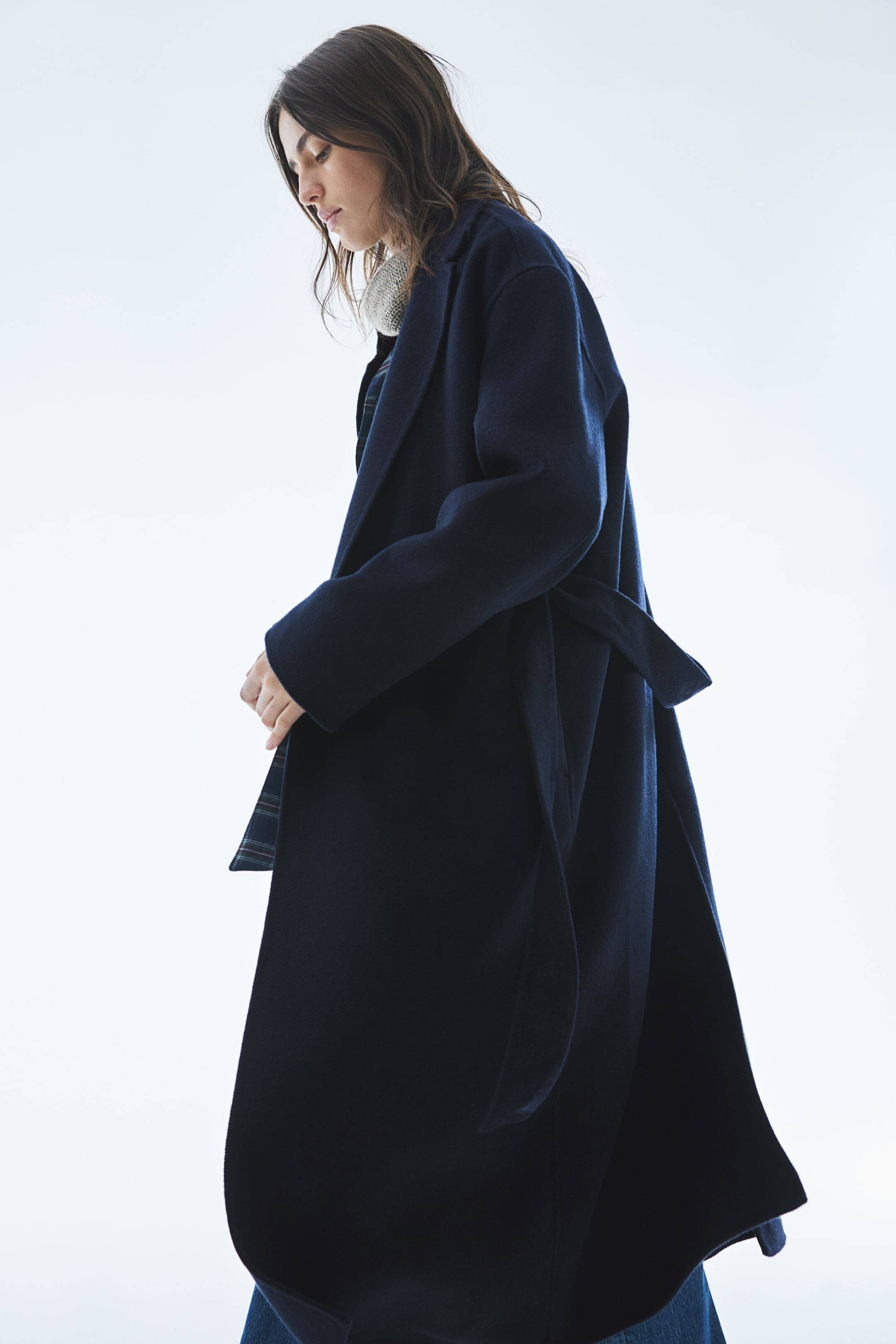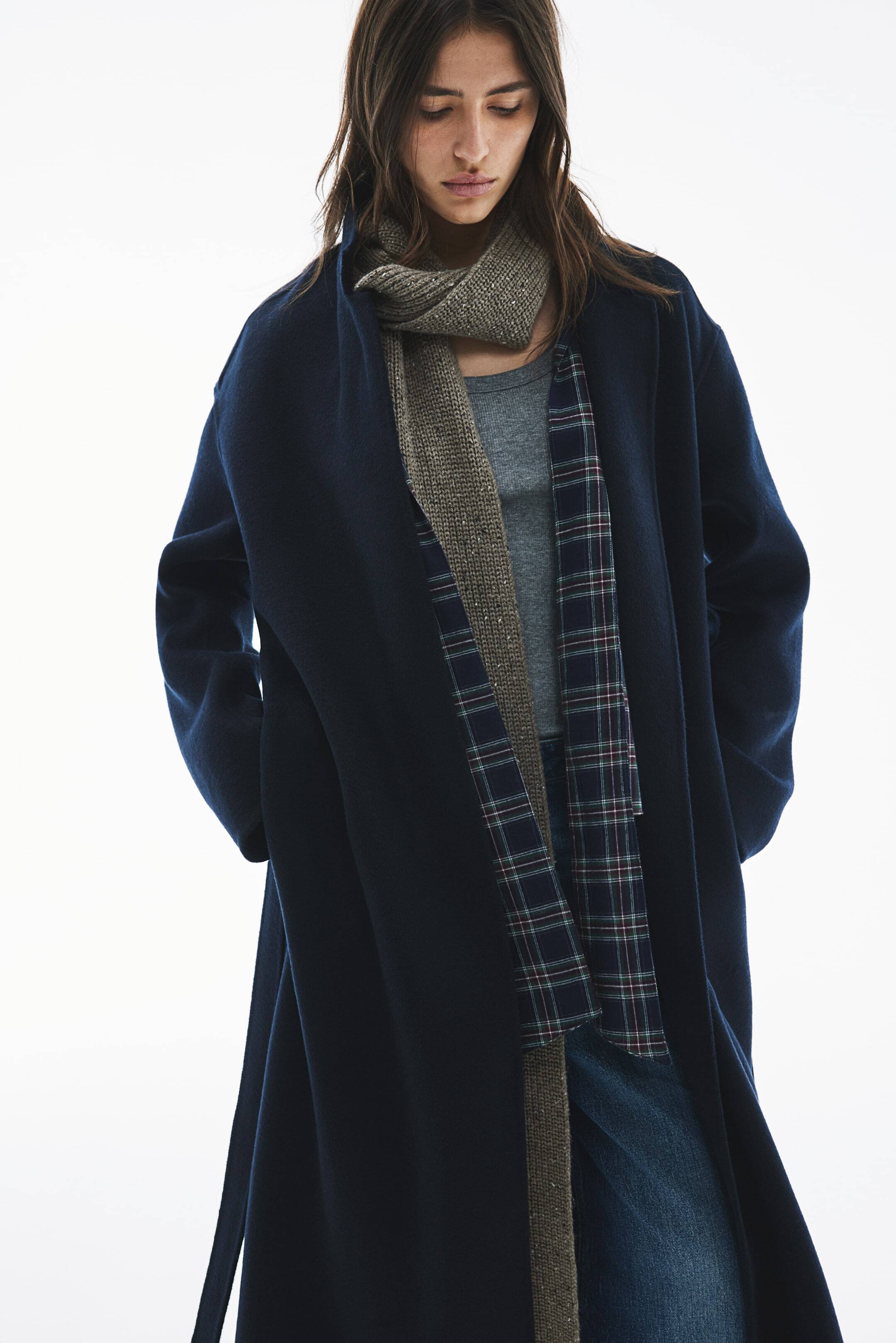 H&M Длинное пальто ручной работы из смесовой шерсти, темно-синий