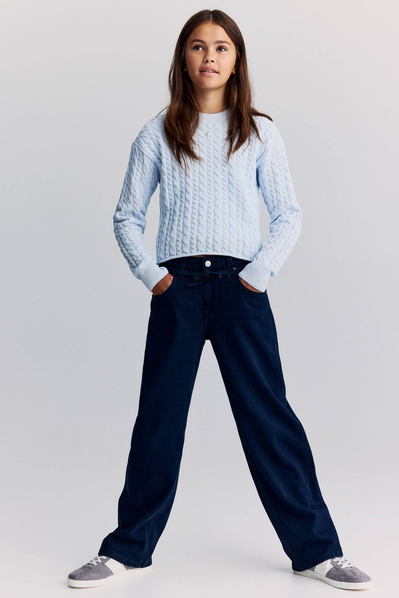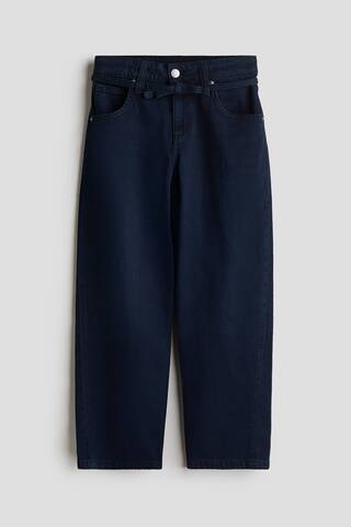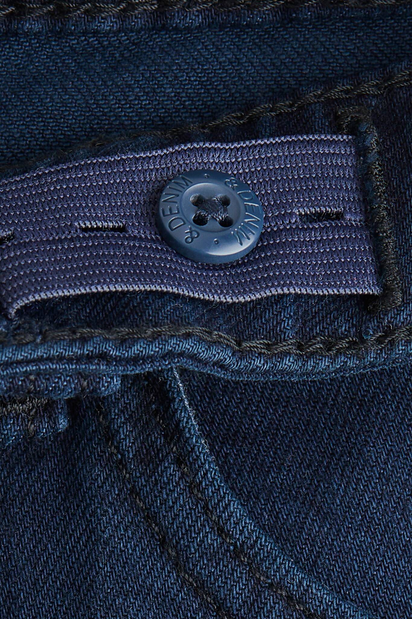 Джинсы с пятью карманами из стираного хлопкового денима. Свободный крой в области бёдер, низкий шаговый шов и закруглённые швы. Талия регулируется резинкой, застёжка-молния на пуговицу.