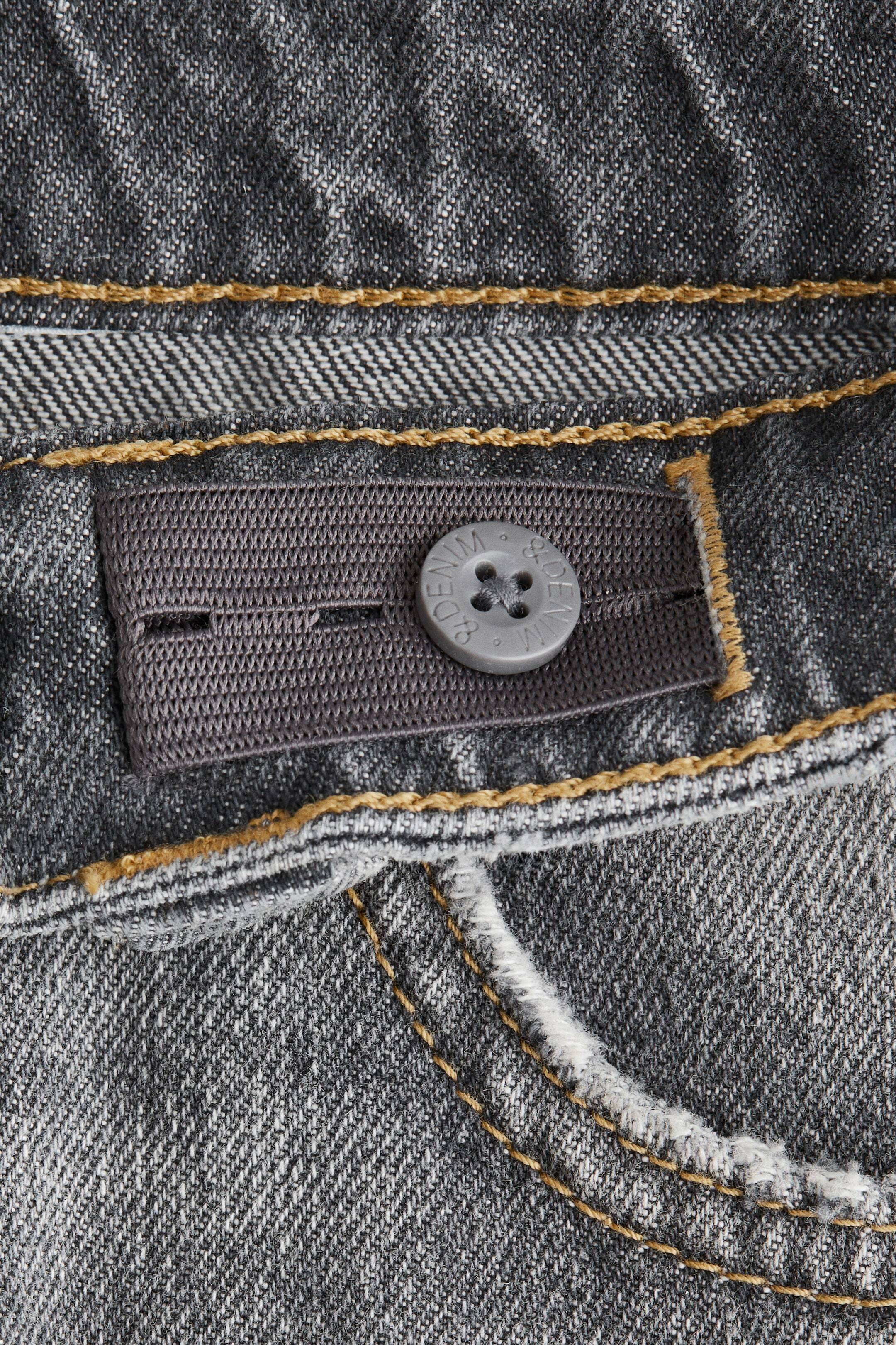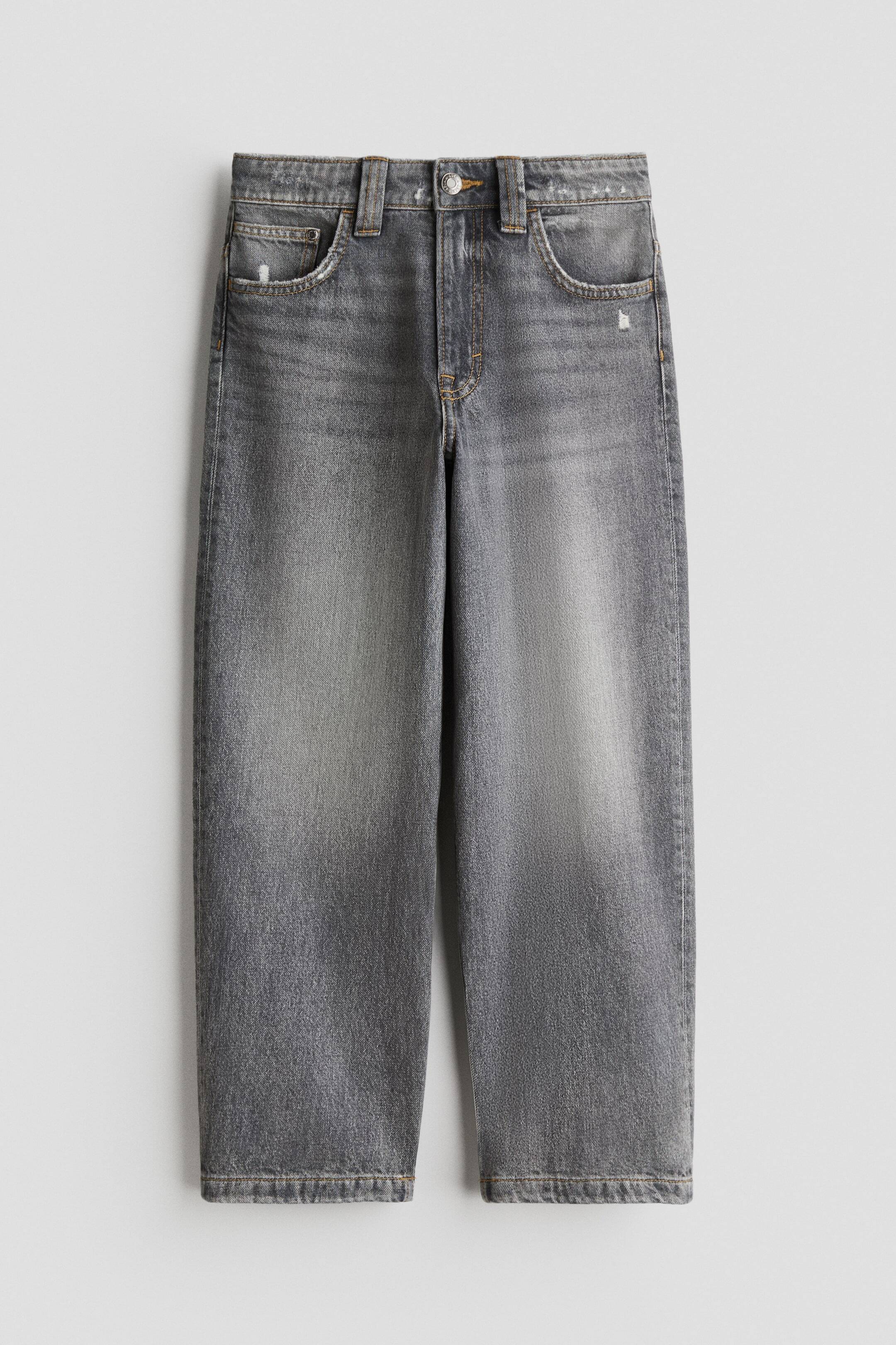 Джинсы с пятью карманами из стираного денима. Свободный крой в бедрах, низкая посадка и широкие штанины. Регулируемый пояс для идеальной посадки. Застежка на молнию и пуговицы.