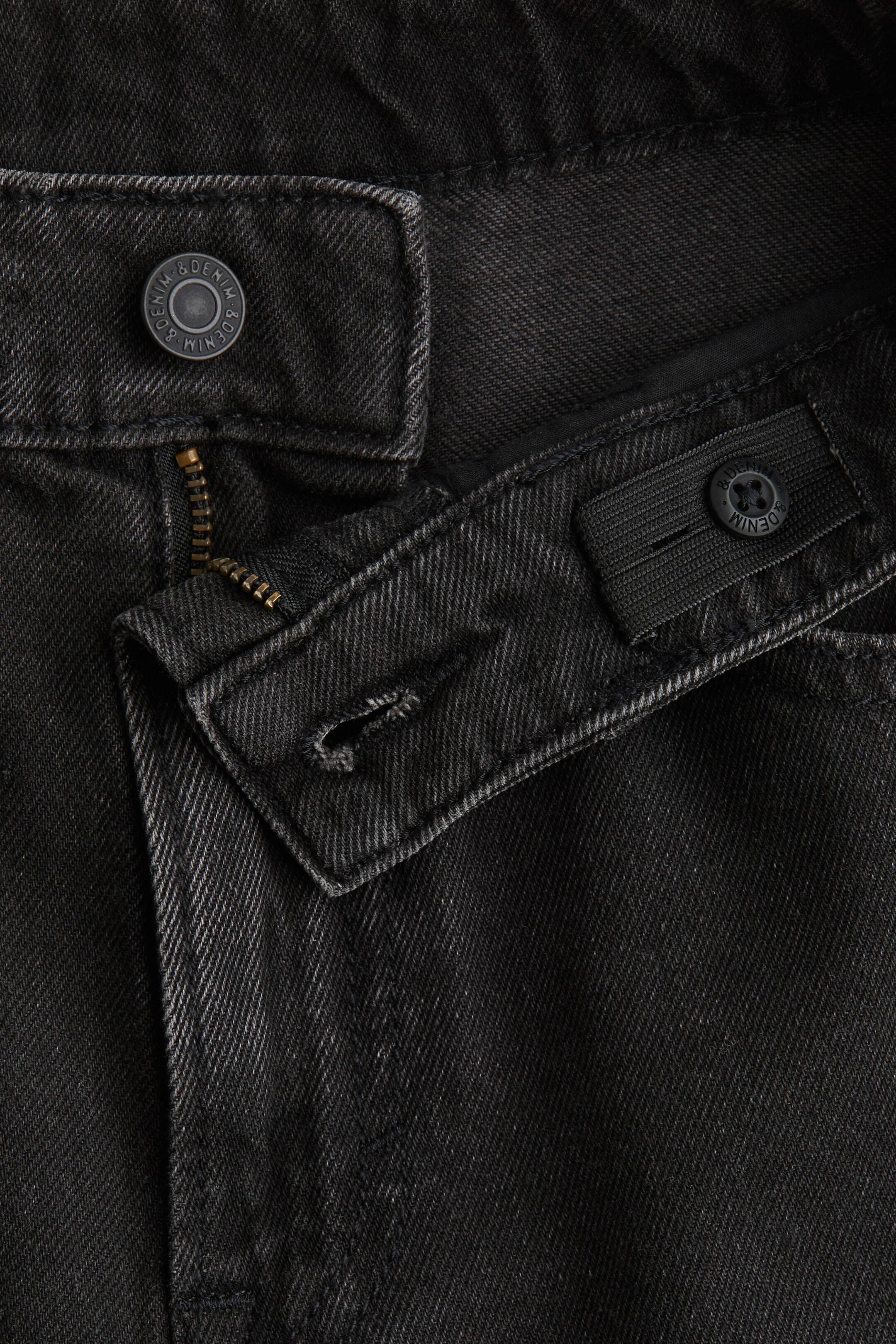 Джинсы с пятью карманами из стираного денима. Свободный крой в бедрах, низкая посадка и широкие штанины. Регулируемый пояс для идеальной посадки. Застежка на молнию и пуговицы.