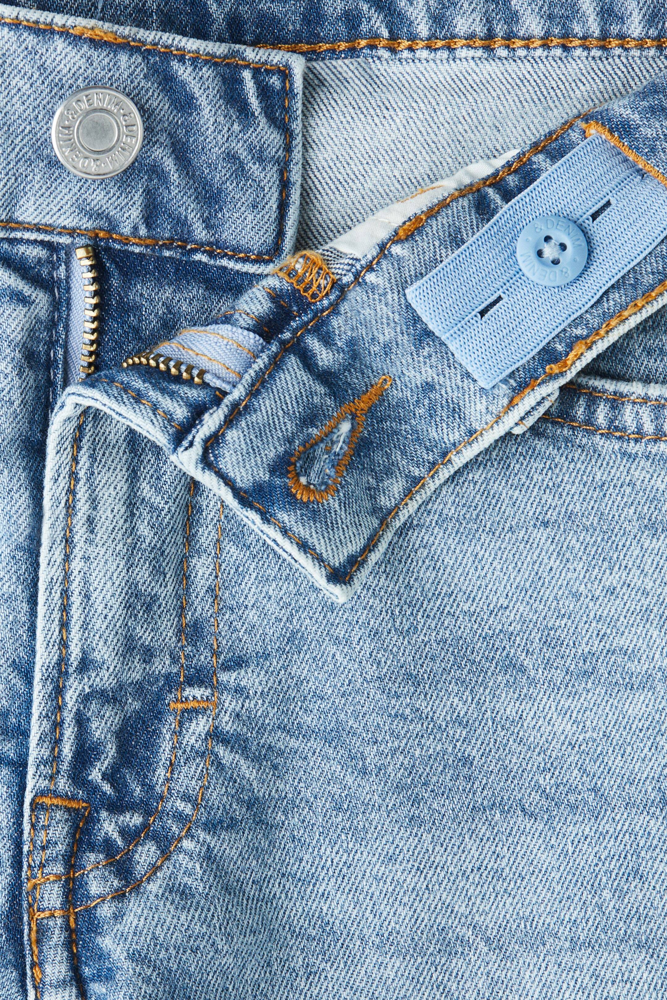 Облегающие брюки из стираного эластичного денима для максимального комфорта. 5 карманов, регулируемая талия на резинке, застежка на молнию и пуговицы, прямой подол.