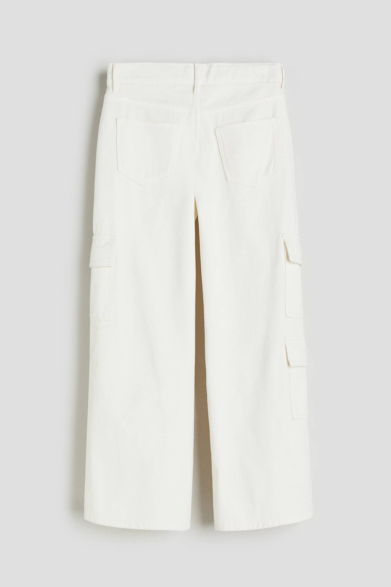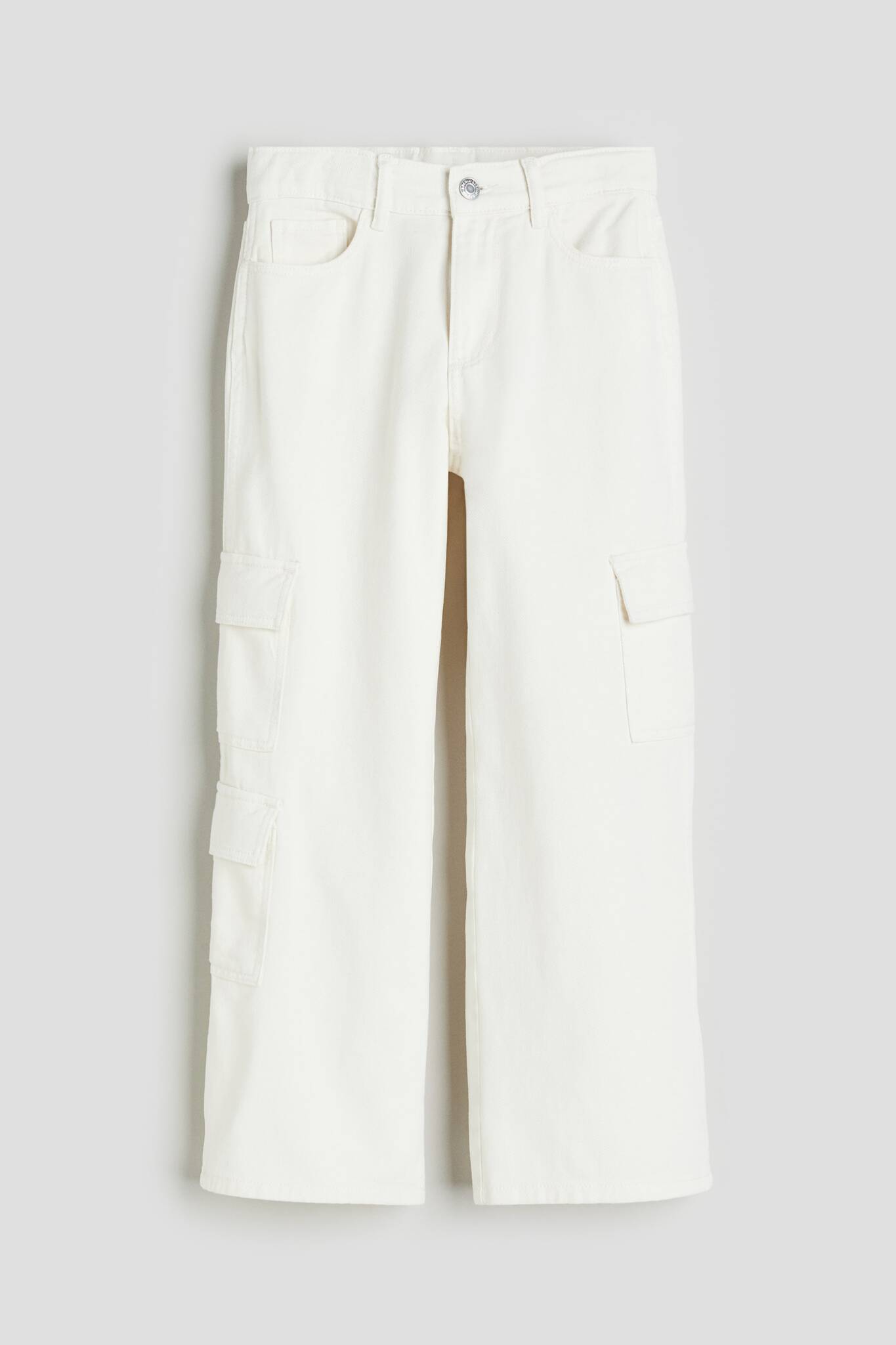 Широкие джинсы из стираного, свободный крой в бедрах. Низкая талия с регулируемой резинкой для идеальной посадки, застежка на молнию. Передние карманы, карманы с клапанами на штанинах и открытые задние карманы.