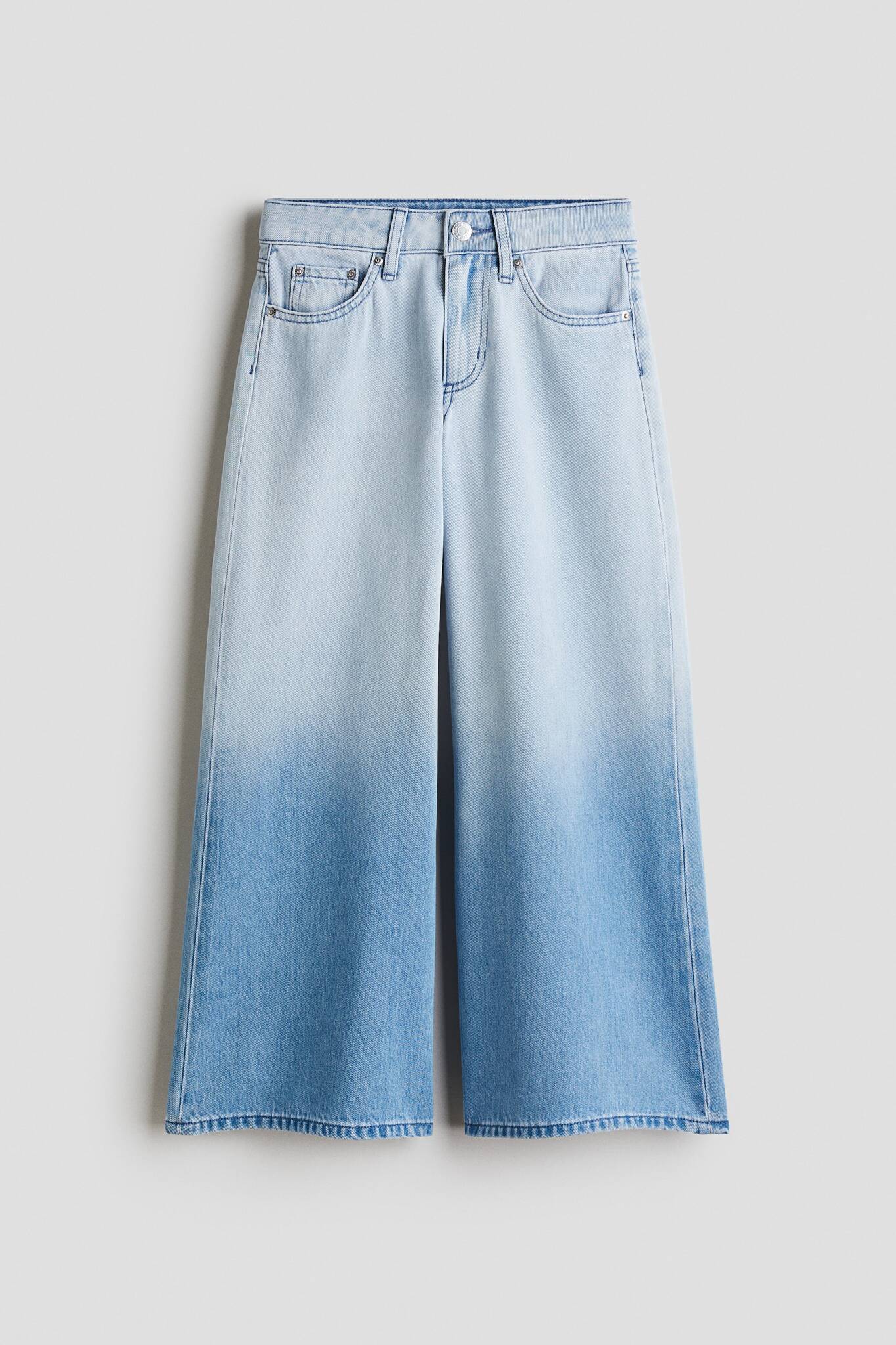 Мягкие джинсы с пятью карманами, свободный крой в области бёдер. Очень широкие штанины. Низкая талия, застёжка на молнию и пуговицу, регулируемая резинка на талии.