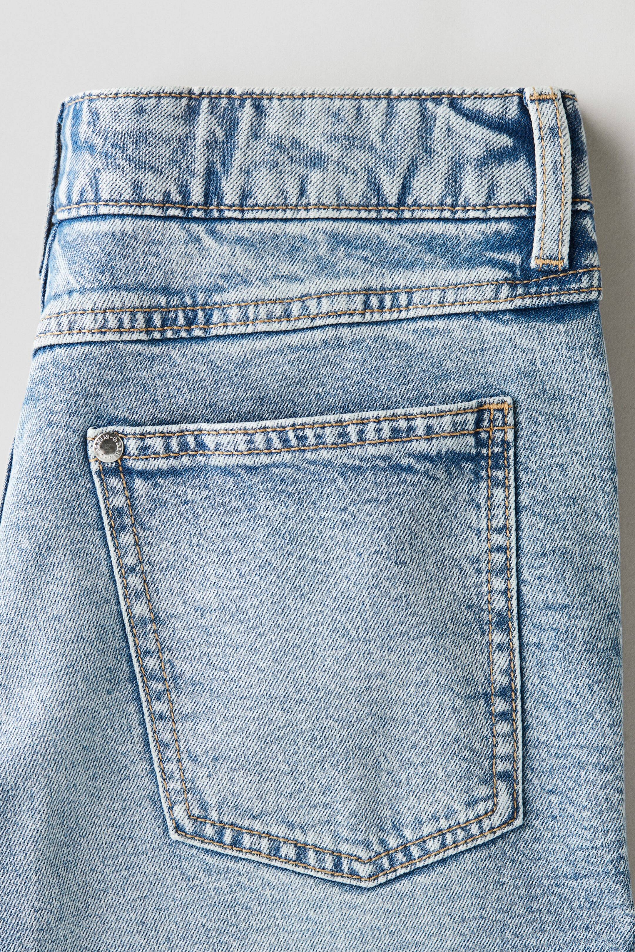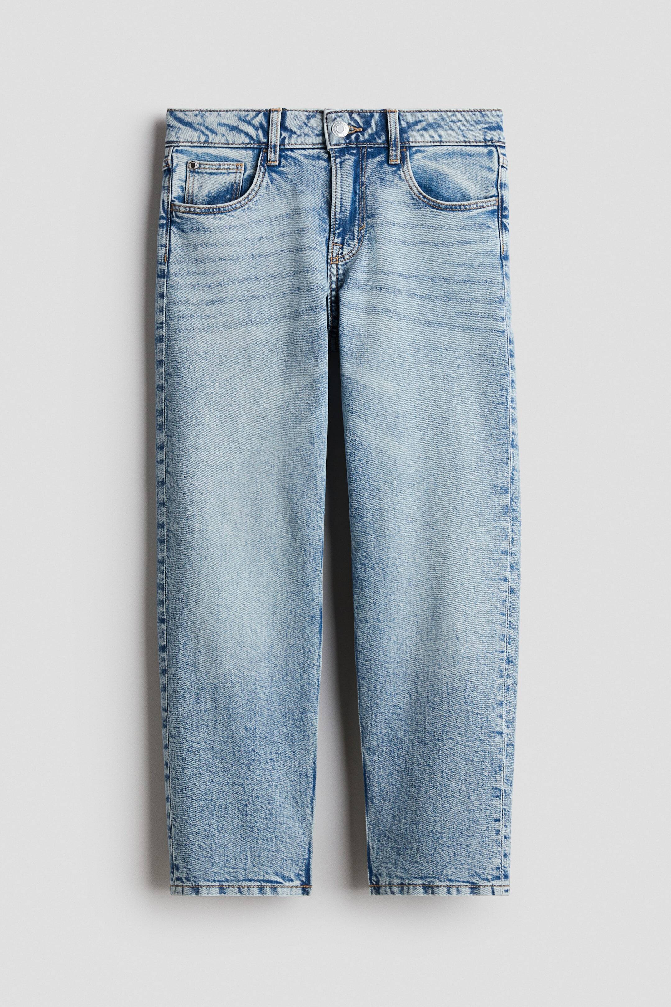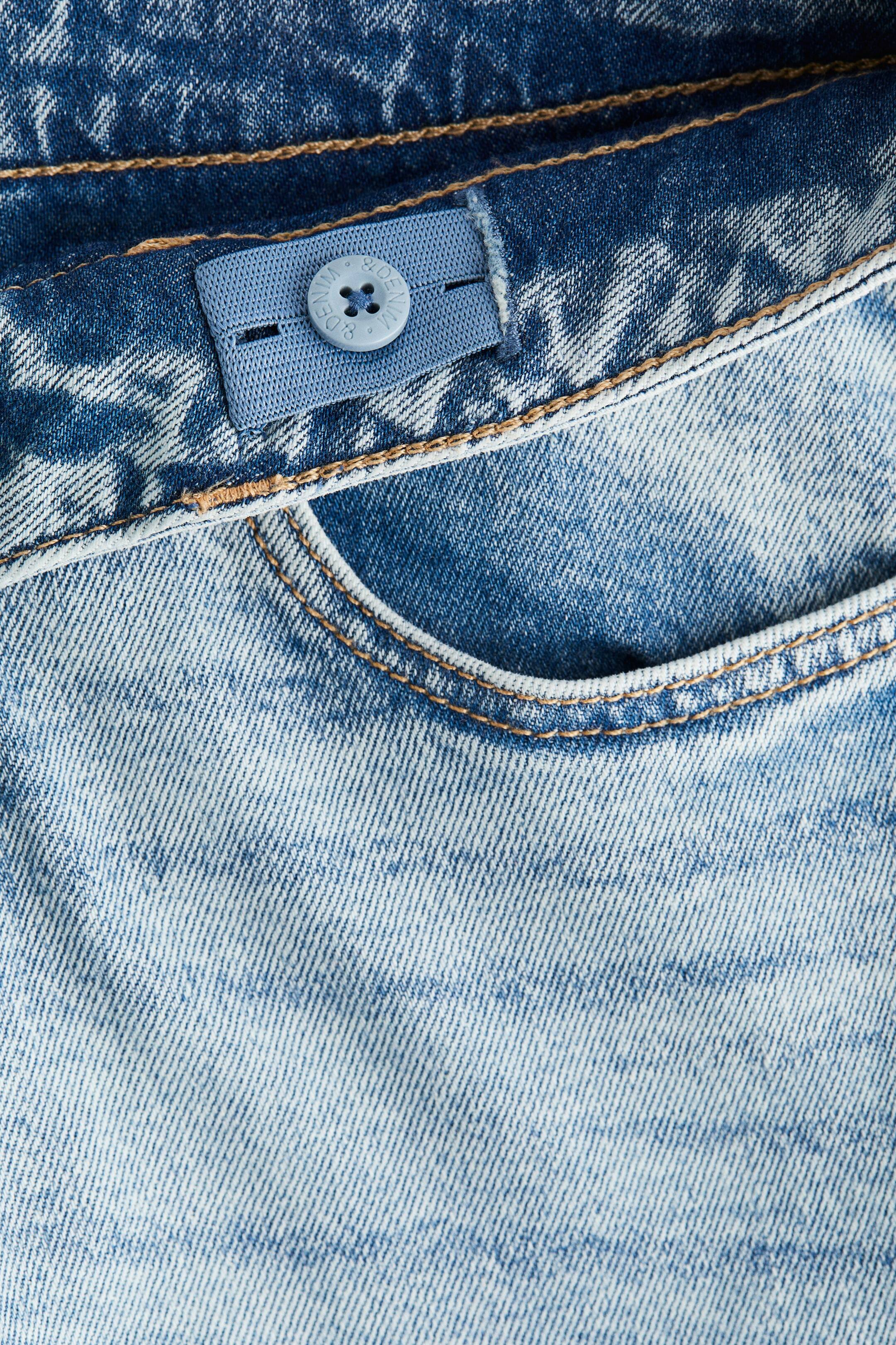 Брюки с пятью карманами из мягкого хлопкового денима на трикотажной подкладке. Свободный крой в области бёдер, зауженные книзу штанины, регулируемая резинка на талии и застёжка на молнию и пуговицу.
