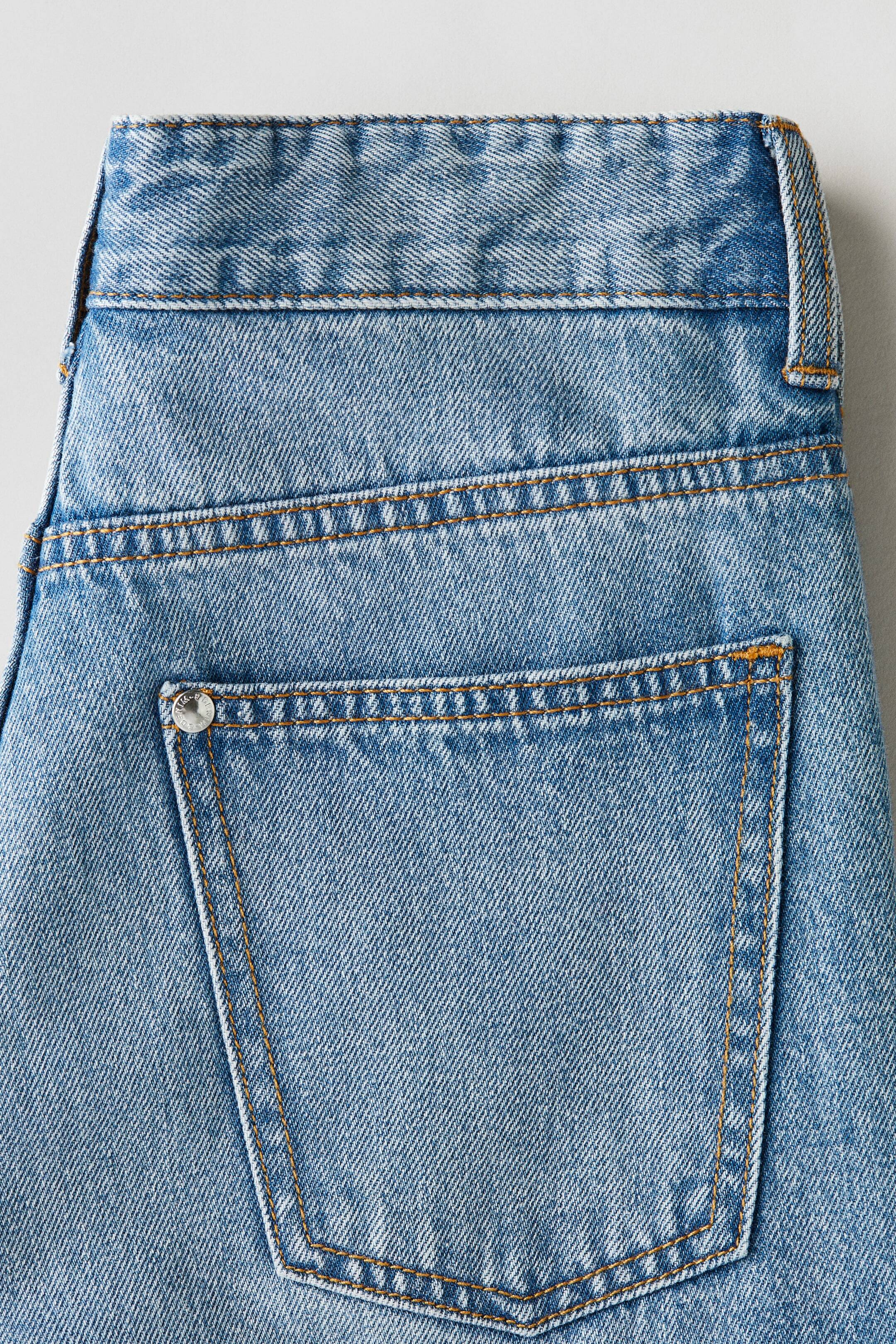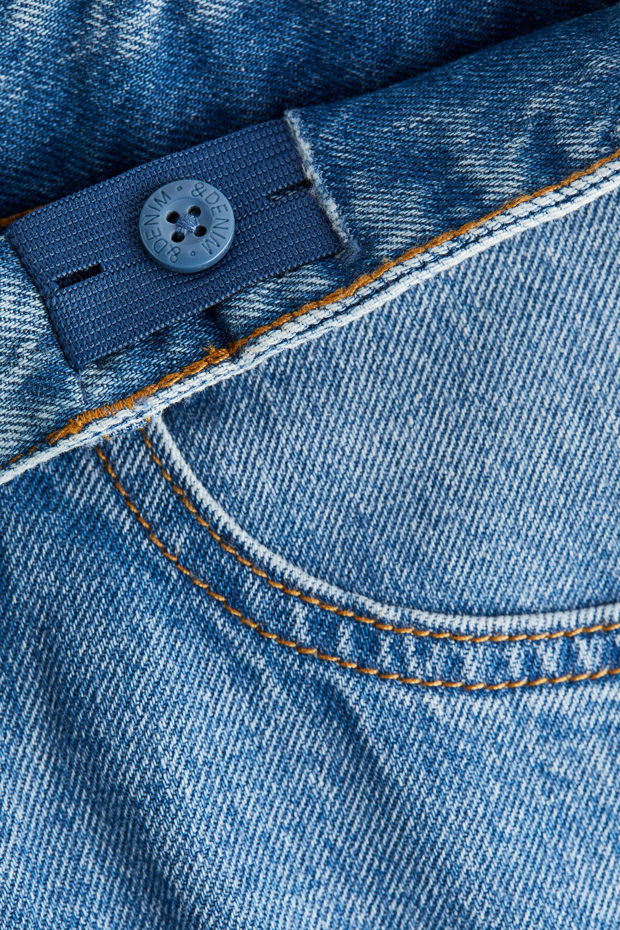Брюки с пятью карманами из мягкого хлопкового денима на трикотажной подкладке. Свободный крой в бедрах, прямые штанины, регулируемая резинка на талии, застежка на молнию и пуговицу.