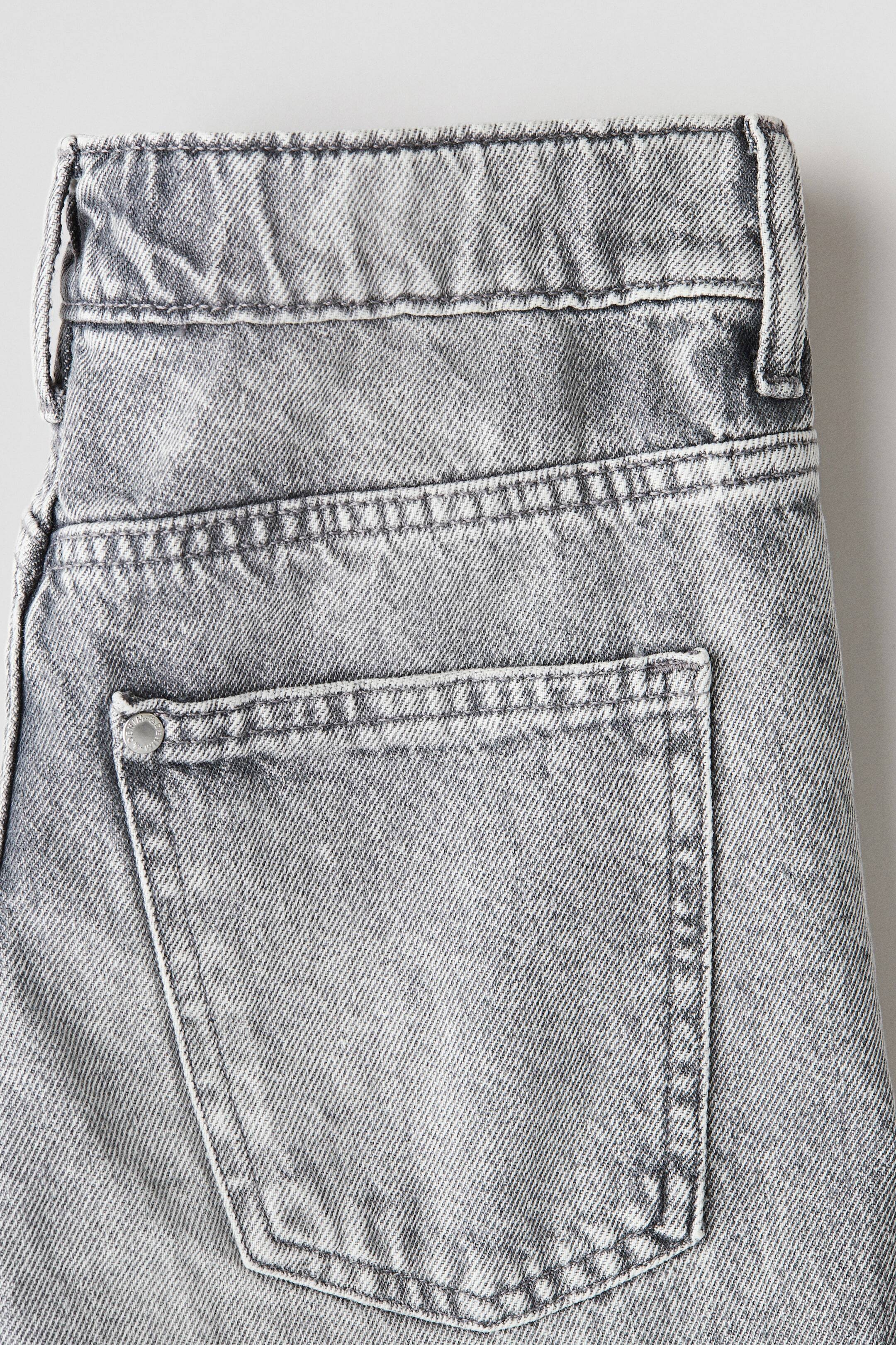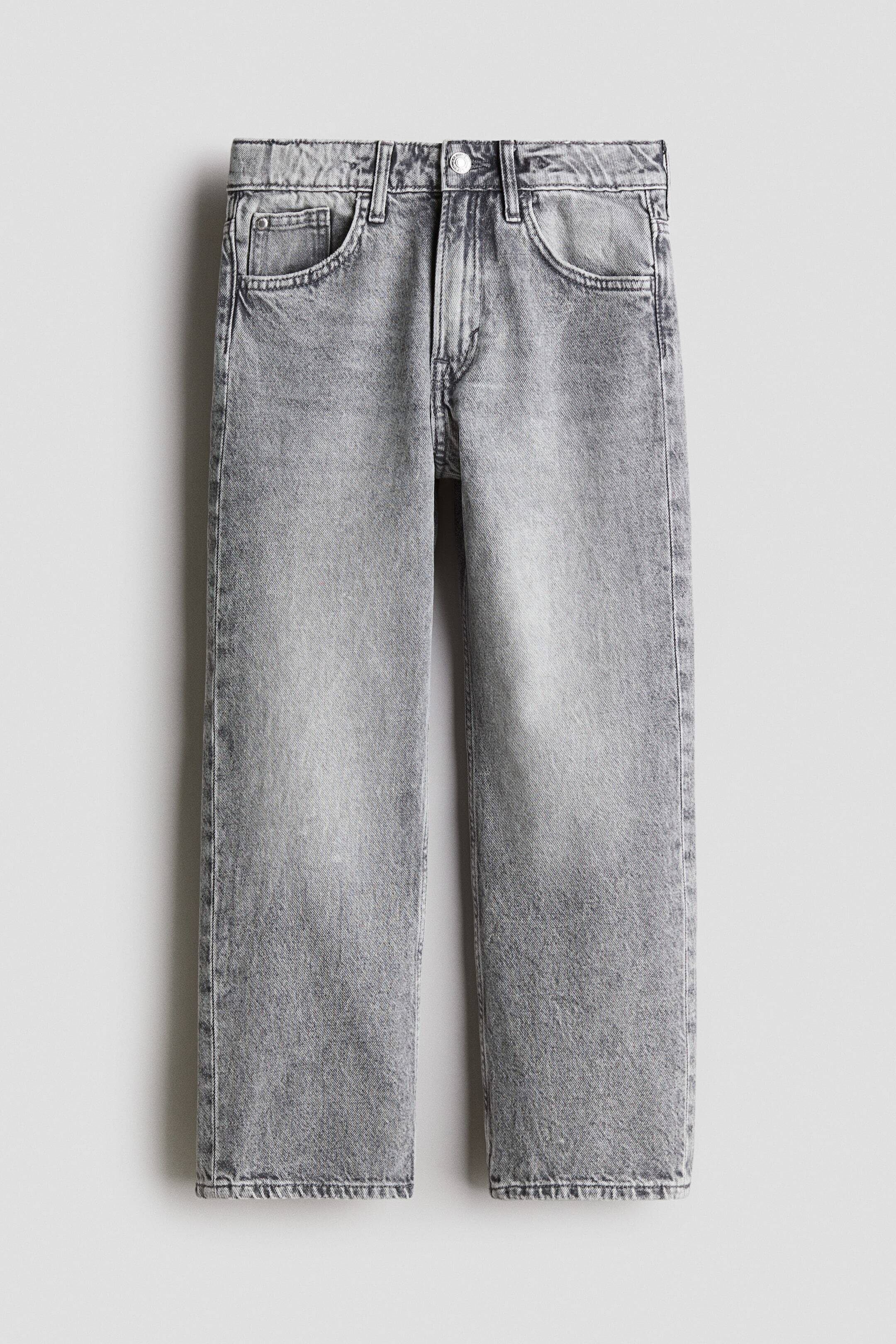 Свободные брюки с пятью карманами из стираного хлопкового денима. Талия регулируется резинкой, застегивается на молнию и пуговицу, брючины прямые.