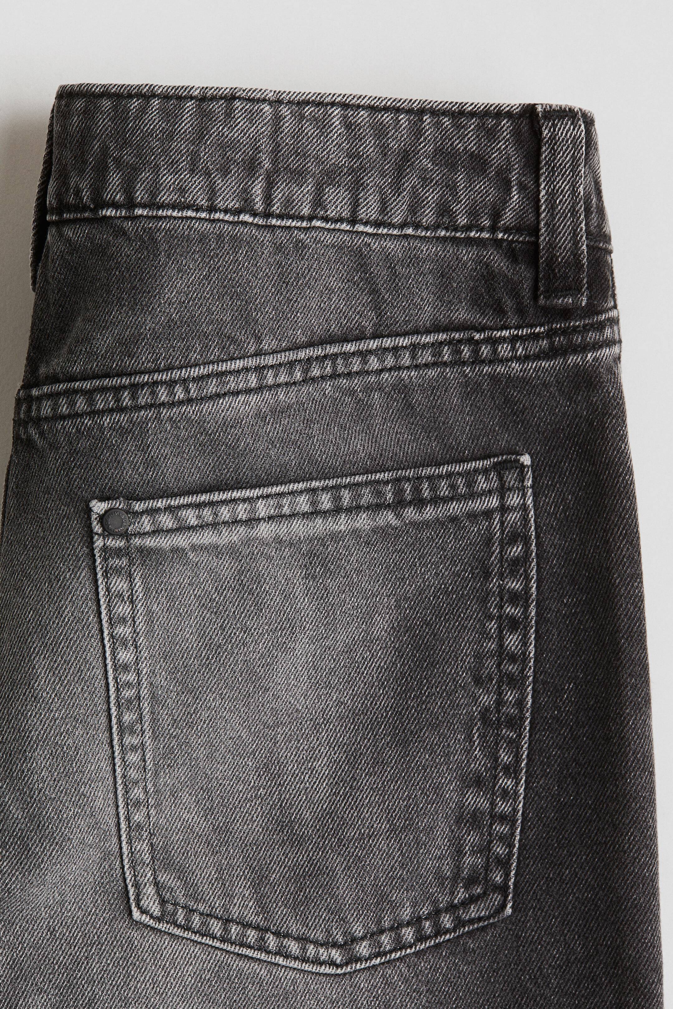 Брюки с пятью карманами из стираного хлопкового денима. Свободный крой в бедрах и ягодицах, широкие штанины. Талия регулируется резинкой, застегивается на молнию и пуговицы.