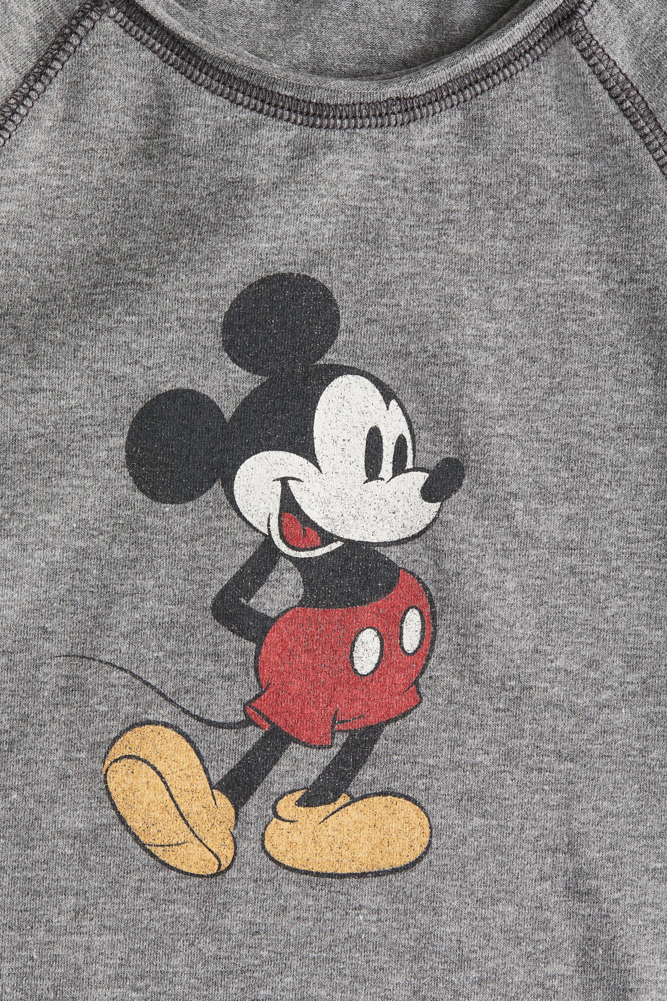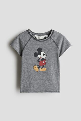 Топ из мягкого трикотажа с принтом спереди. Круглый вырез горловины, рукава реглан с рельефными плоскими швами и необработанными отворотами.
