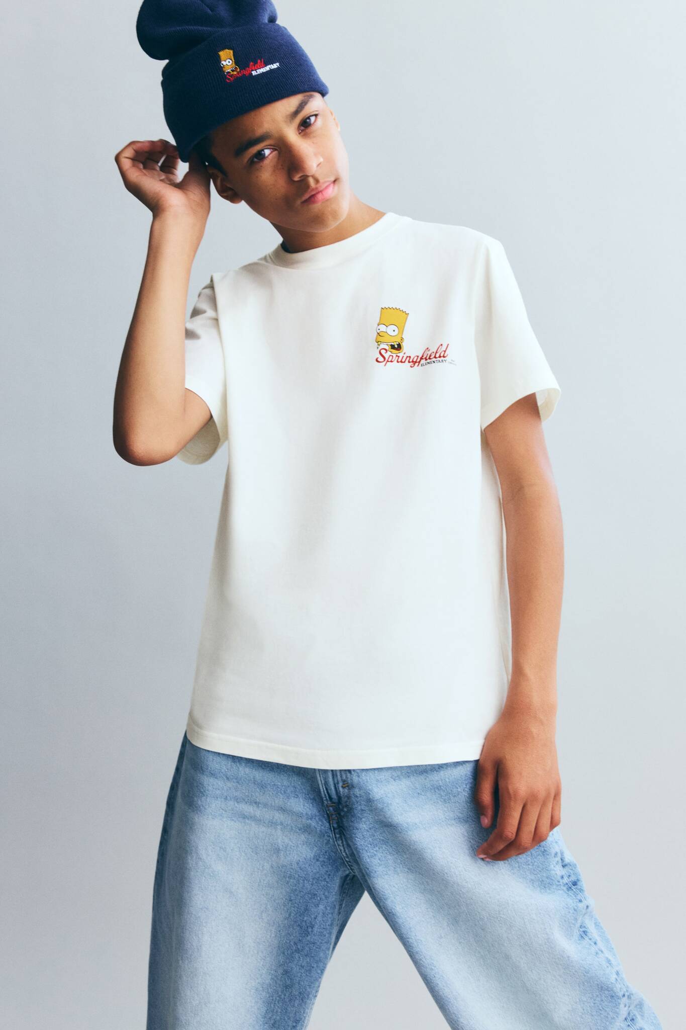 Футболка из мягкого хлопкового трикотажа с принтом, круглым вырезом и спущенными плечами.