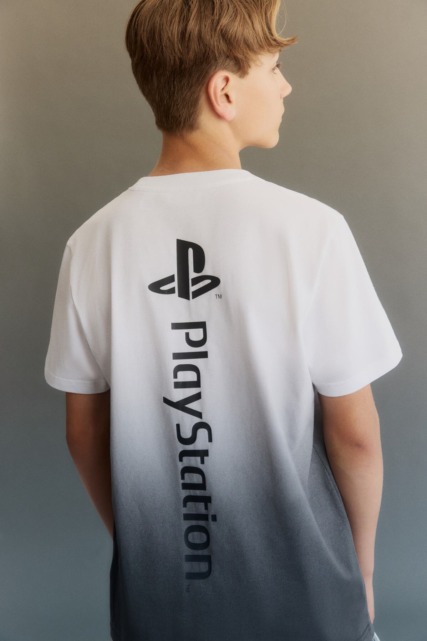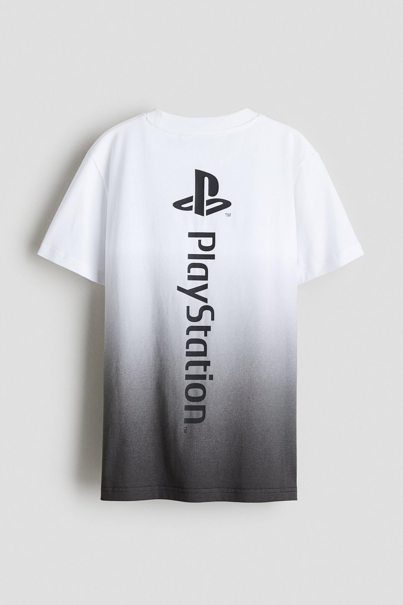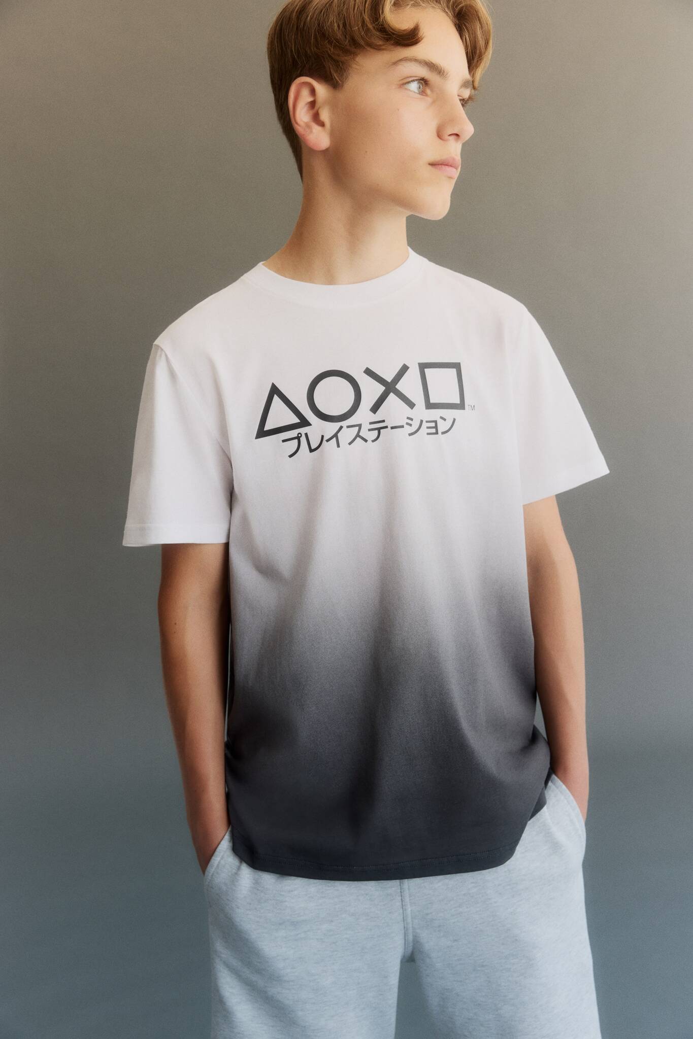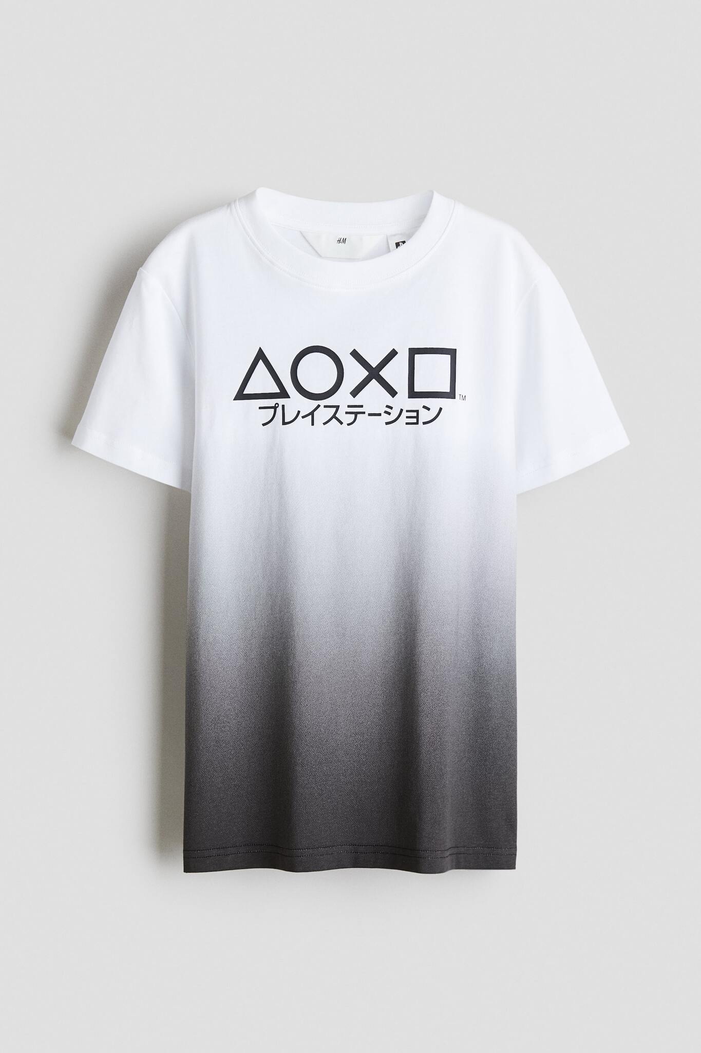 Футболка из мягкого хлопкового трикотажа с принтом, круглым вырезом и спущенными плечами.