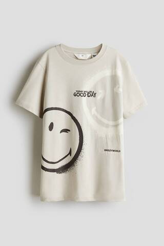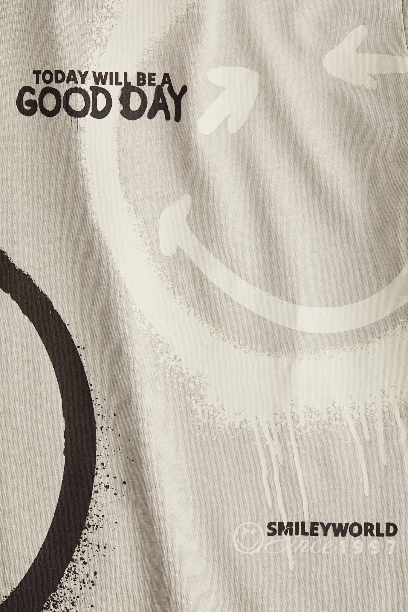 Футболка из мягкого хлопкового трикотажа с принтом, круглым вырезом и спущенными плечами.