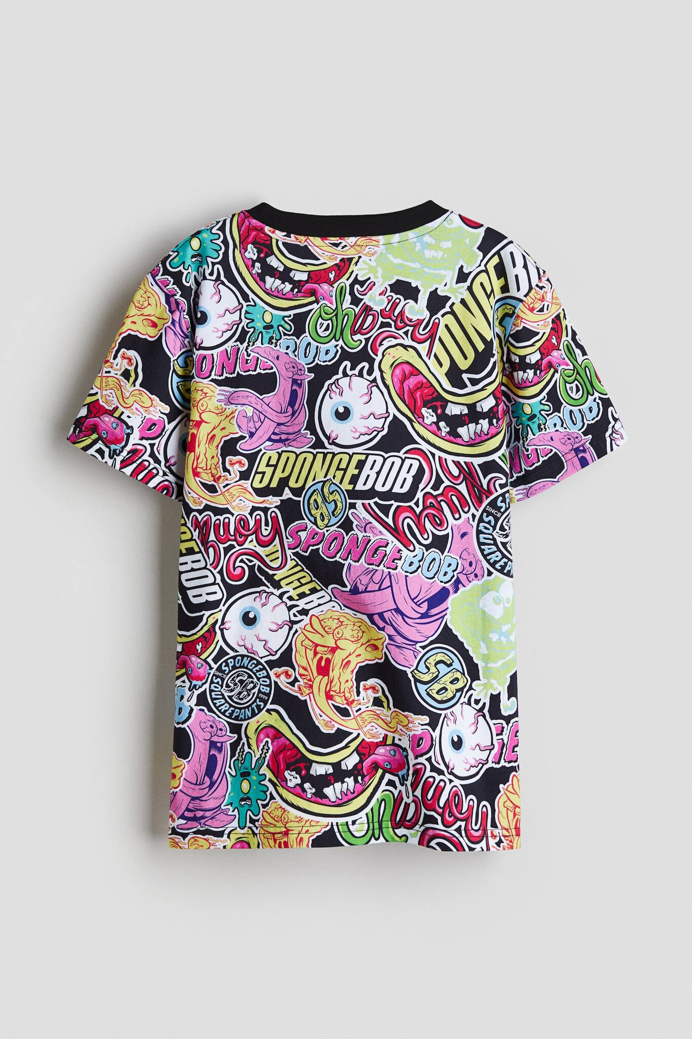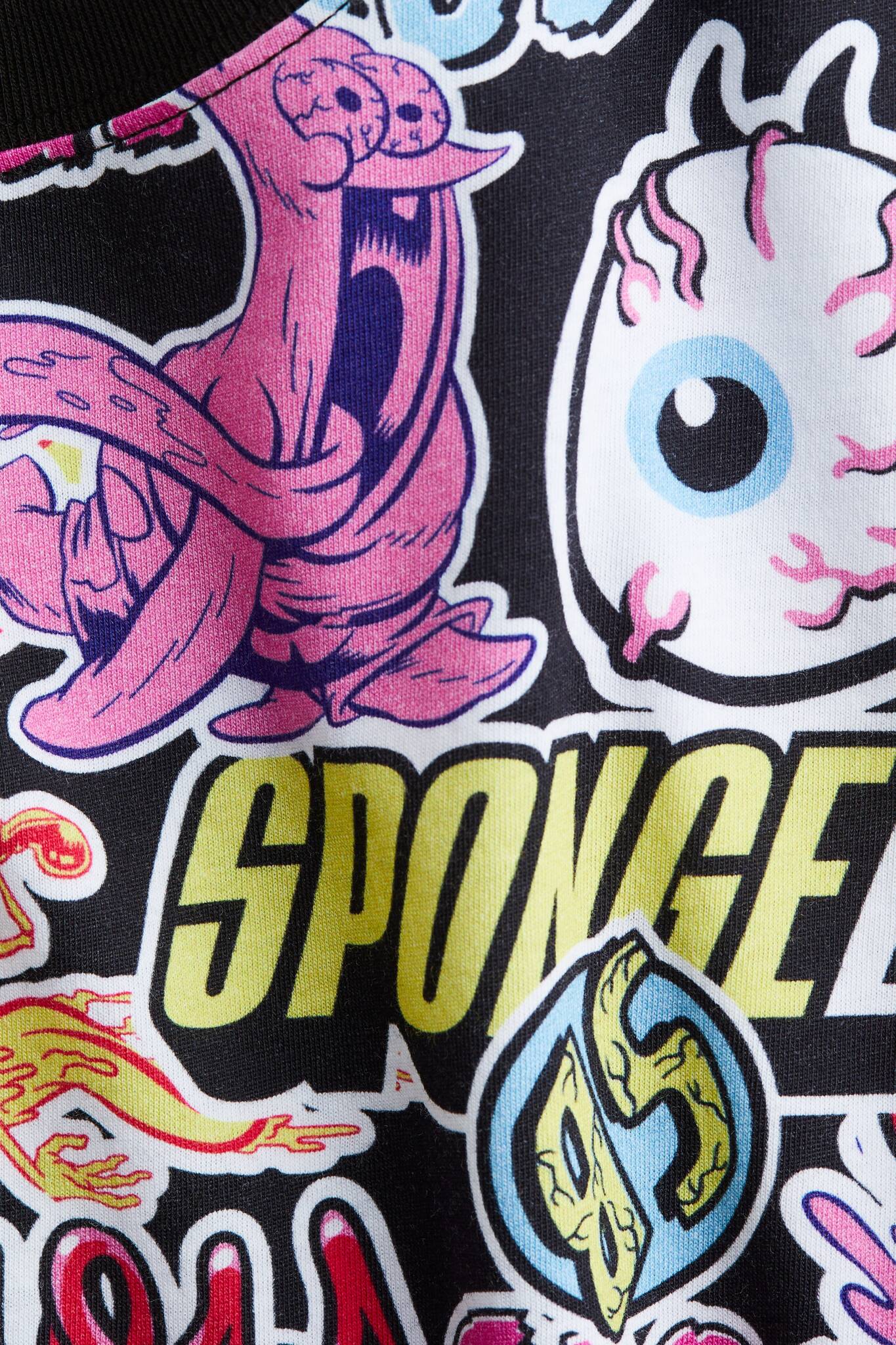 Футболка из мягкого хлопкового трикотажа с принтом, круглым вырезом и спущенными плечами.