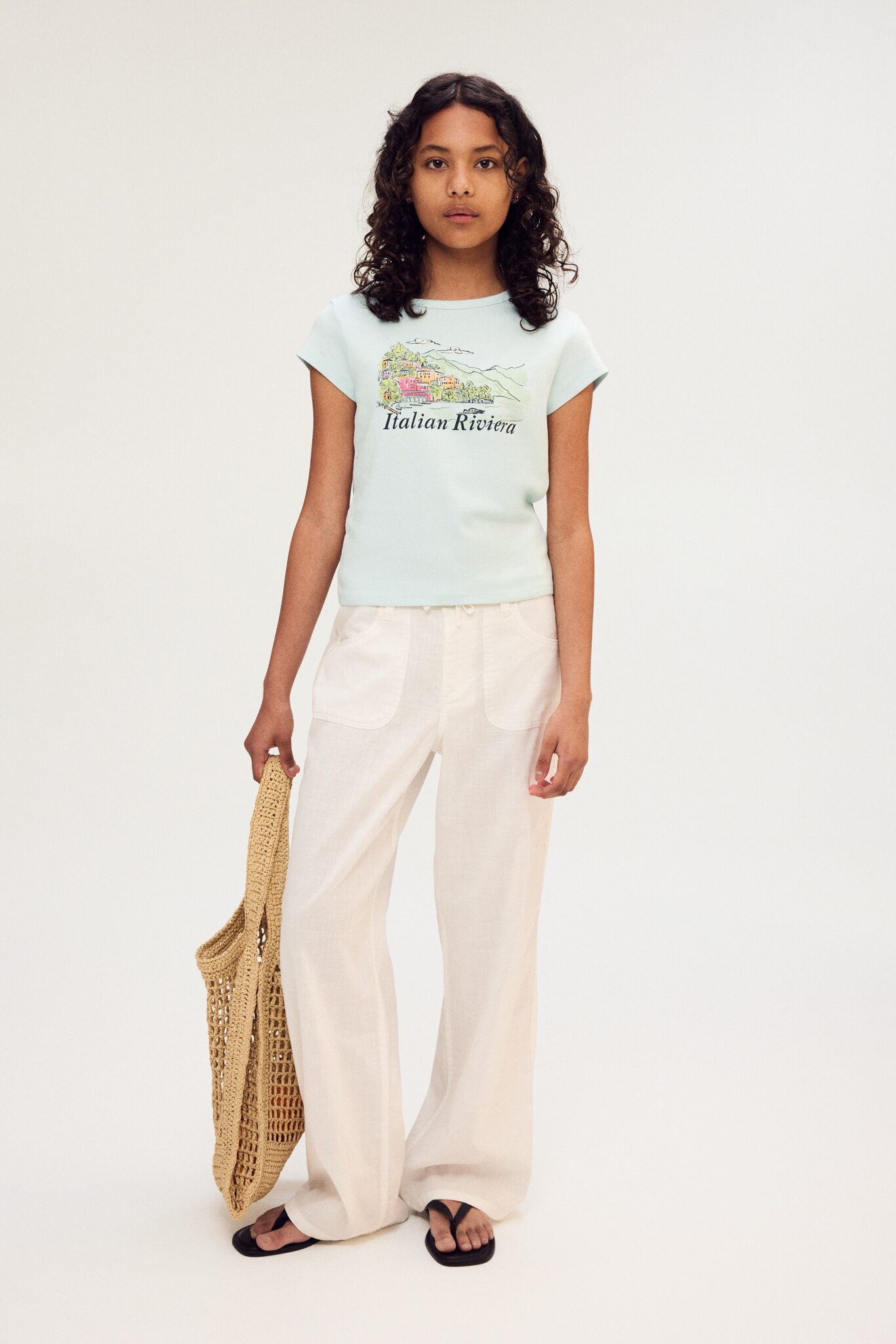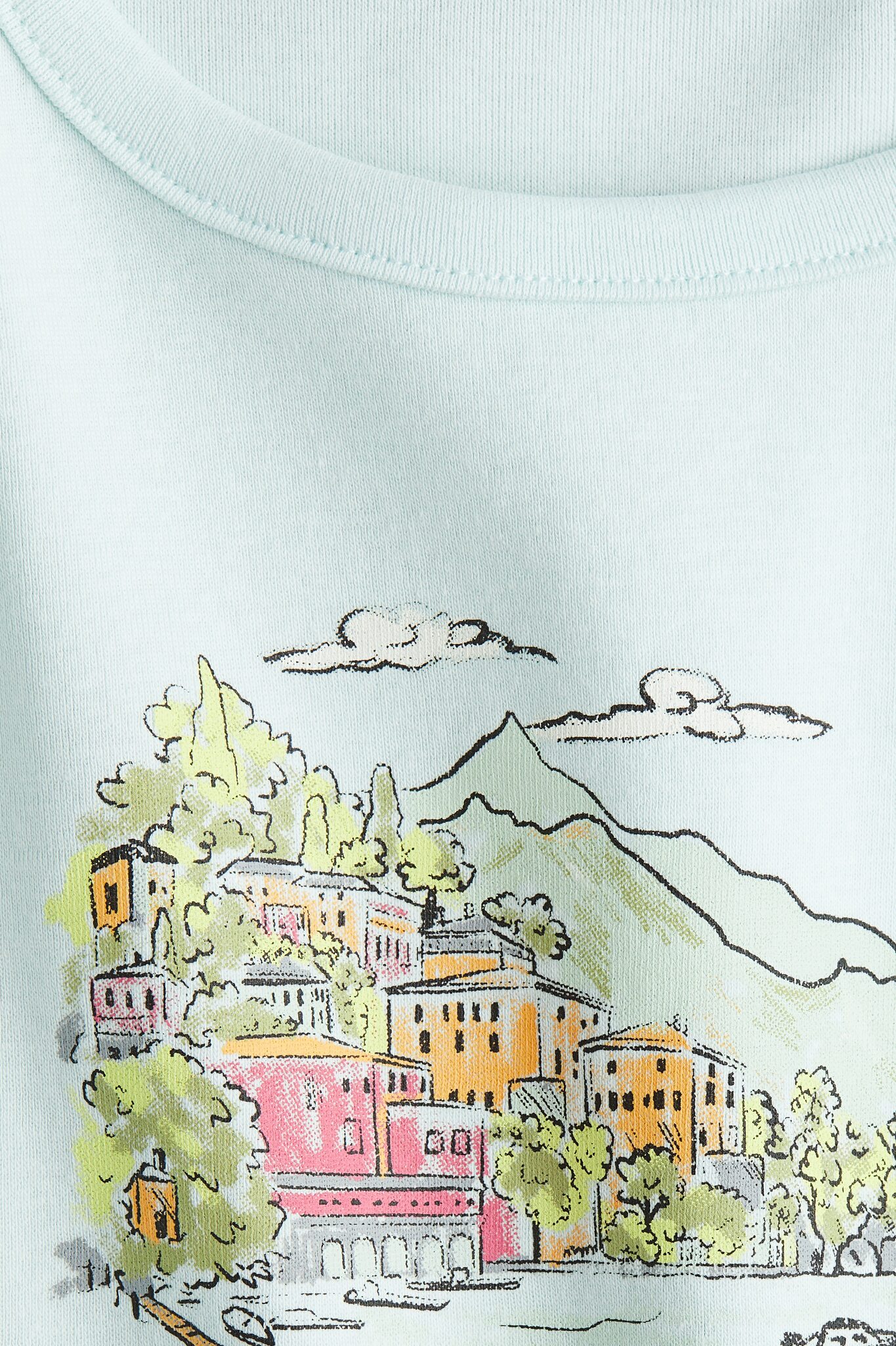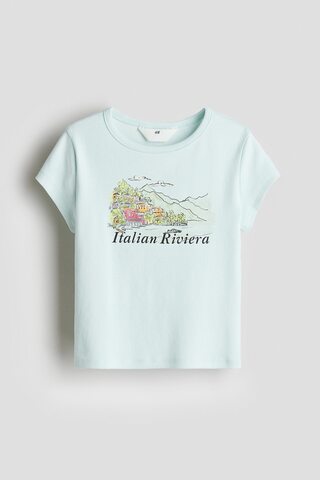 H&M Футболка из хлопка с принтом, светло-бирюзовый