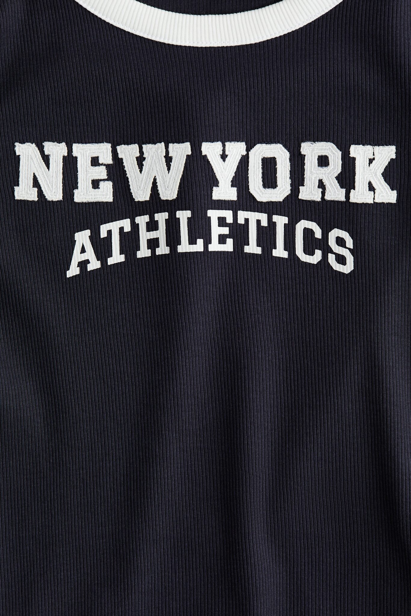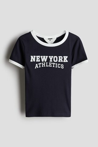 Футболка с короткими рукавами из мягкого хлопкового трикотажа в рубчик, с набивным рисунком спереди и круглым вырезом.