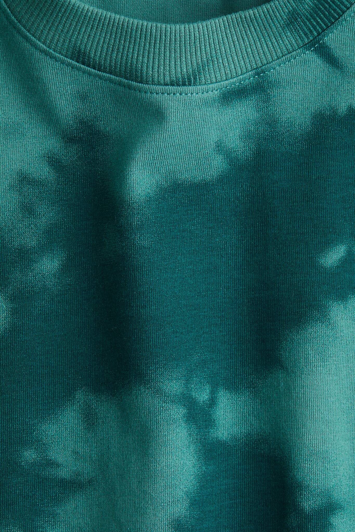 Футболка свободного кроя из мягкого хлопкового трикотажа с принтом, круглым вырезом с ребристой отделкой и спущенными плечами.