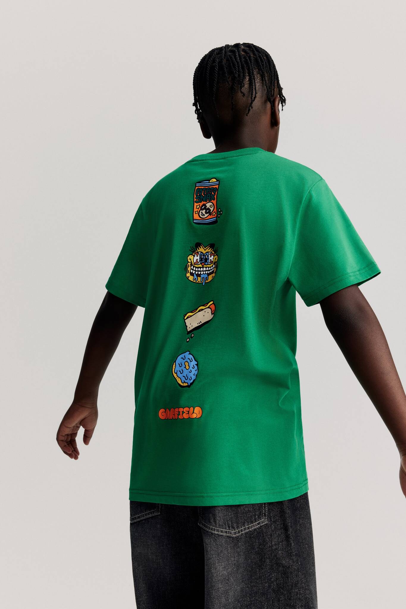 Футболка из мягкого хлопкового трикотажа с принтом, круглым вырезом и спущенными плечами.