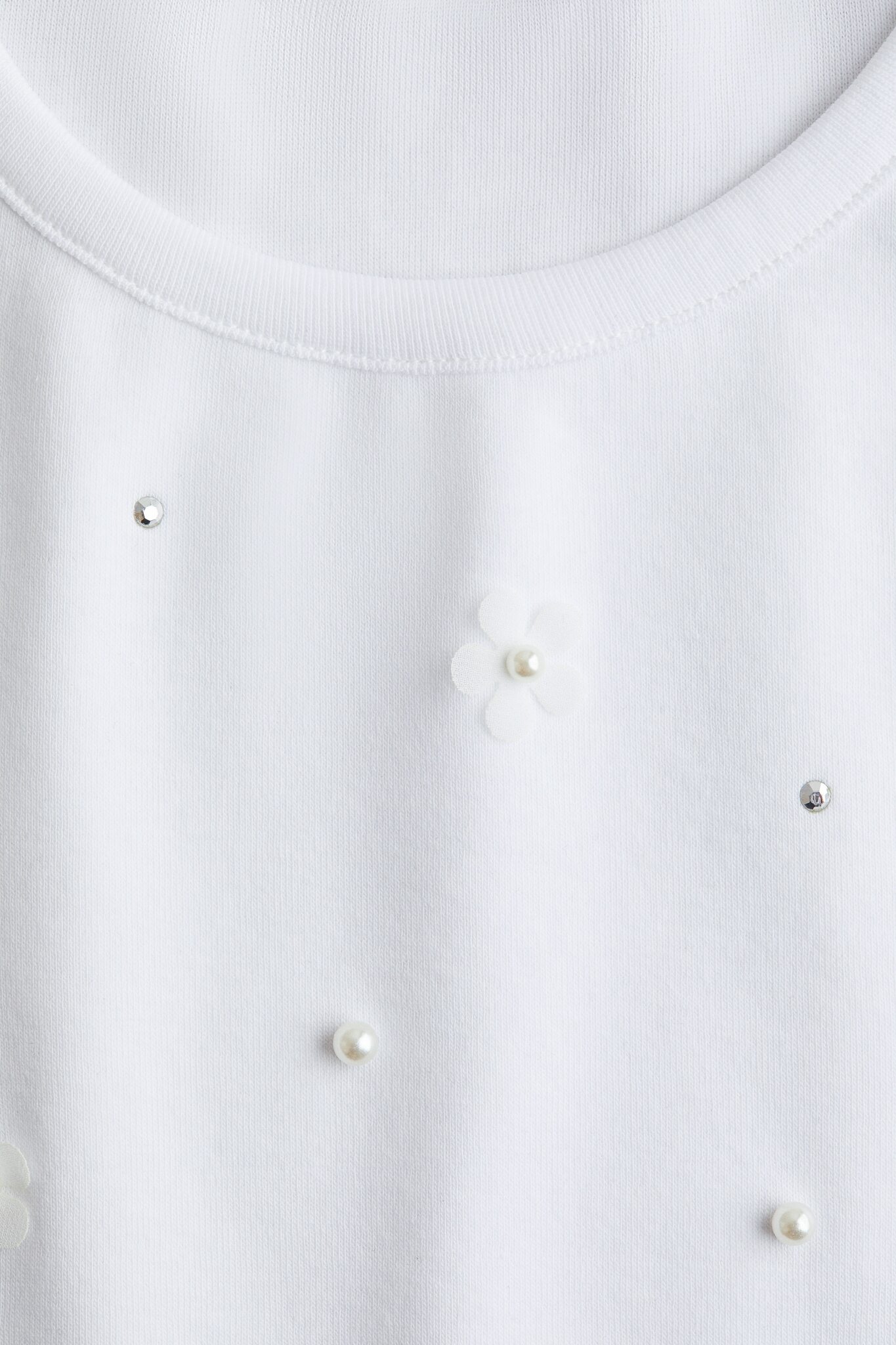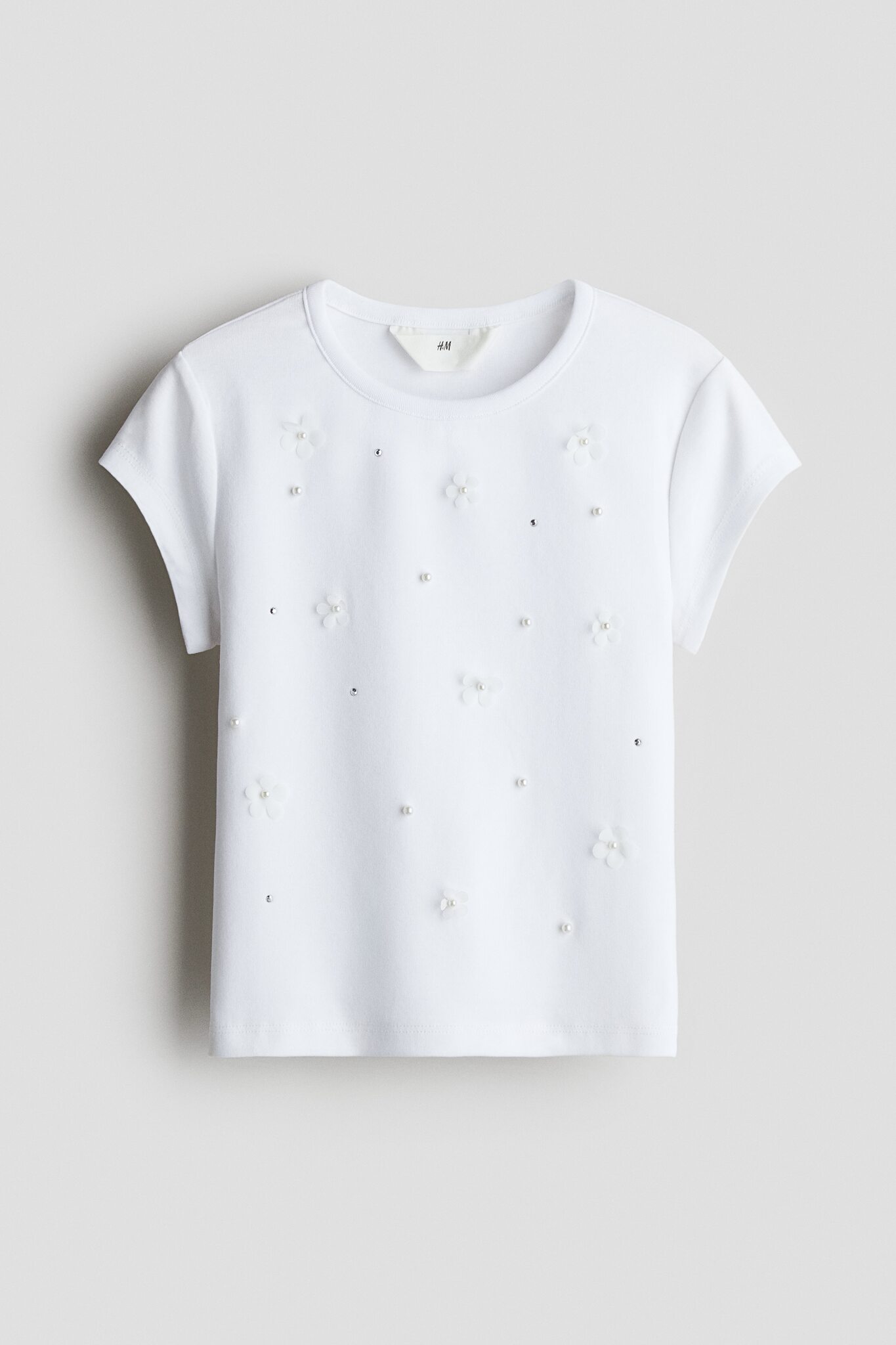 Топ из мягкого хлопкового трикотажа с блестящей вышивкой. Круглый вырез горловины и рукава-крылышки.