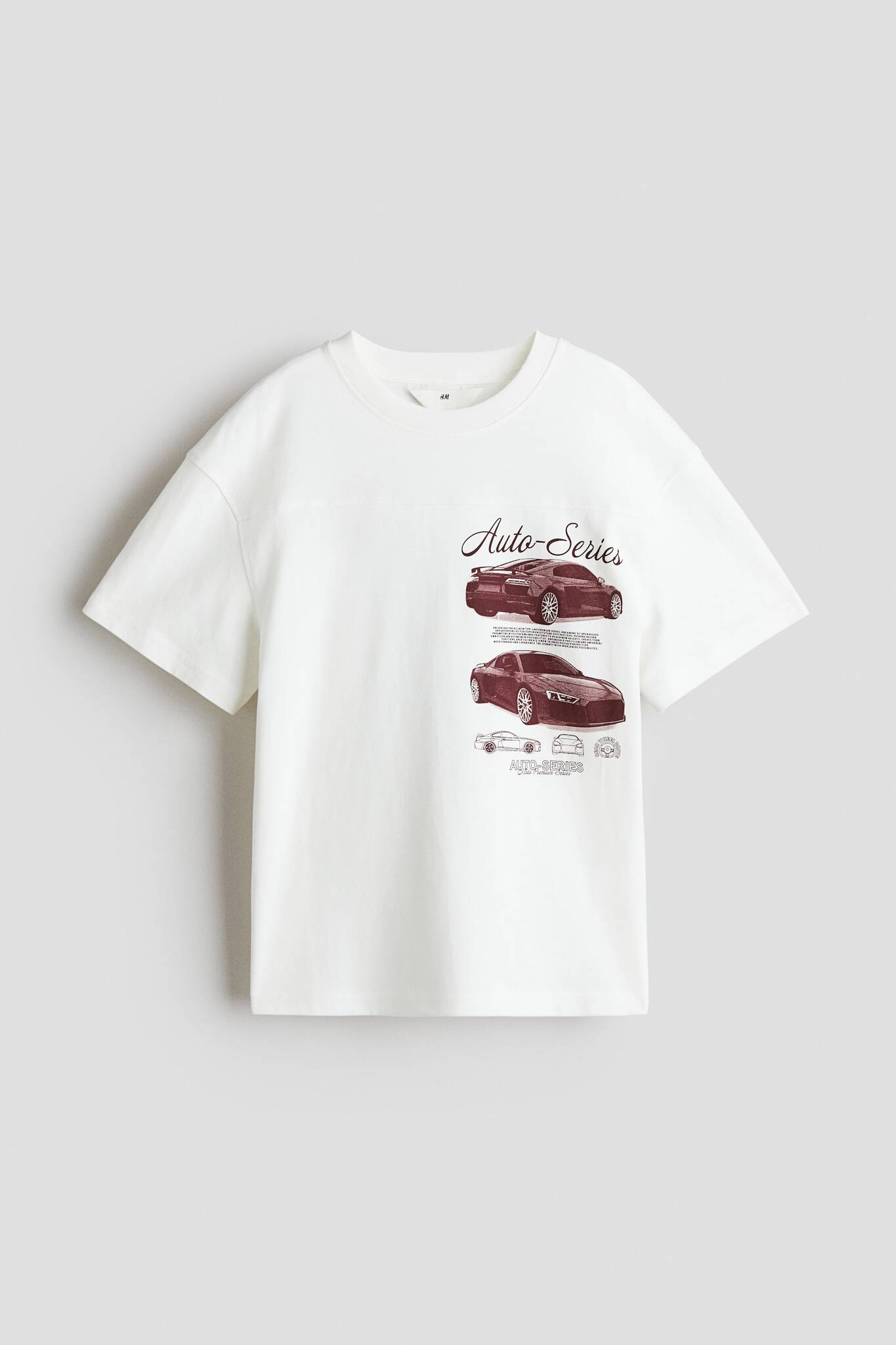 Футболка свободного кроя из мягкого хлопкового трикотажа с принтом, кокеткой спереди. Круглый вырез горловины с ребристым краем и спущенной линией плеча.