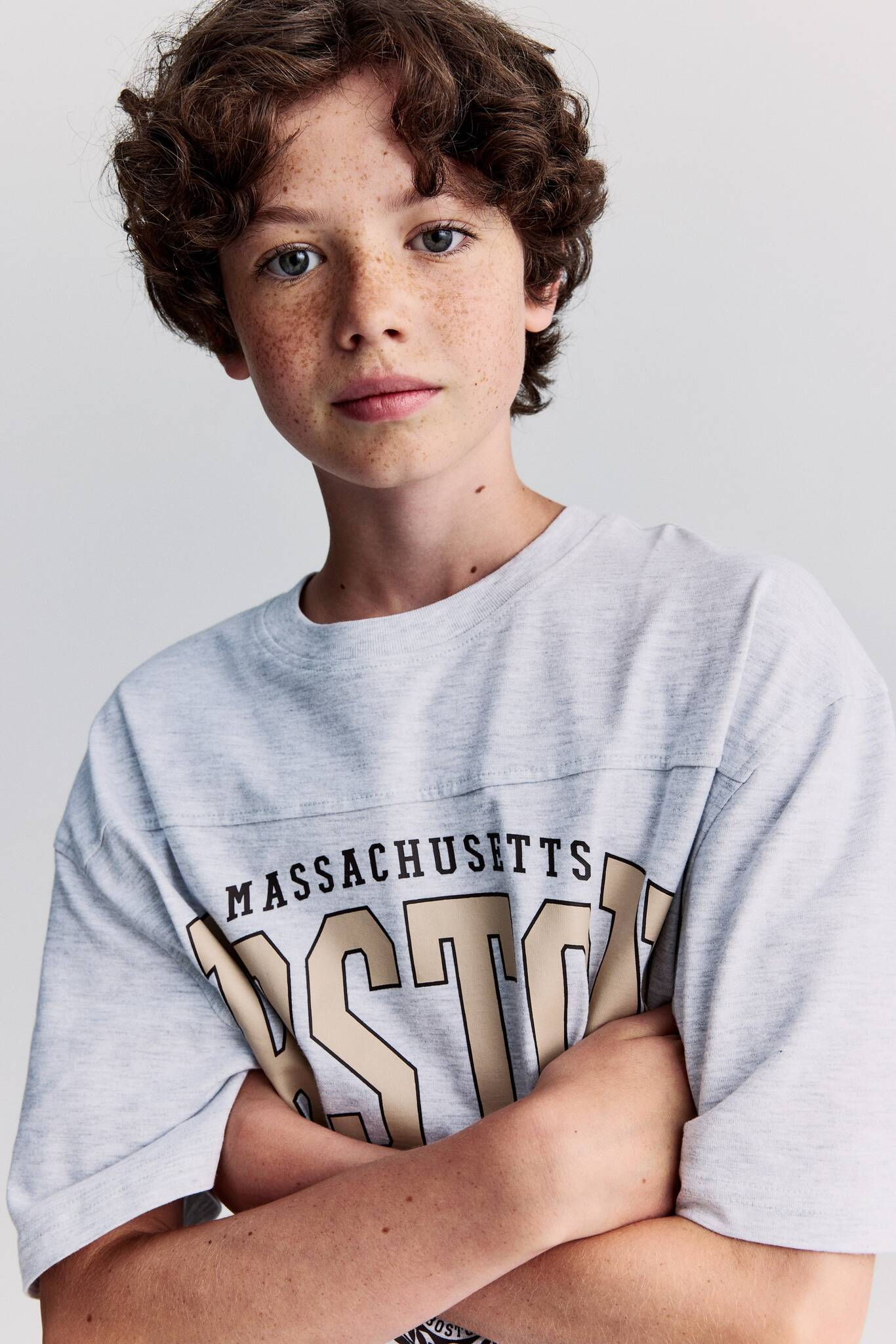 H&M Футболка оверсайз с принтом, серый
