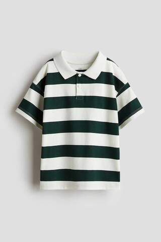 Футболка-поло из хлопкового трикотажа, с круглым вырезом, с манжетами и пуговицами.