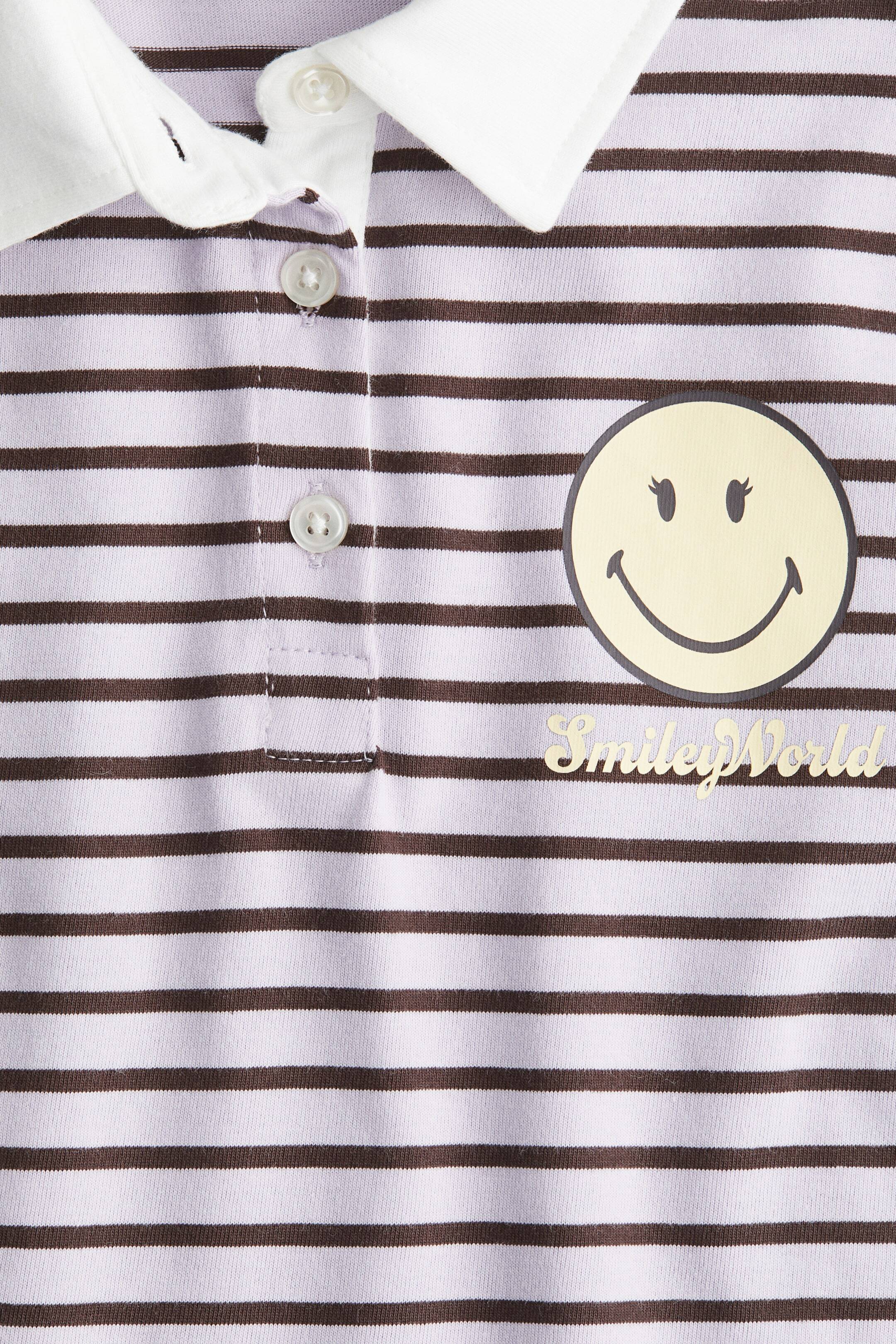 Рубашка-регби свободного кроя из мягкого хлопкового джерси с принтом спереди. Отложной воротник, планка на пуговицах, спущенная линия плеча и длинные рукава.