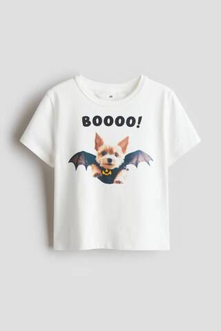 Футболка из мягкого хлопкового трикотажа с принтом. Круглый вырез с ребристым краем и короткие рукава.