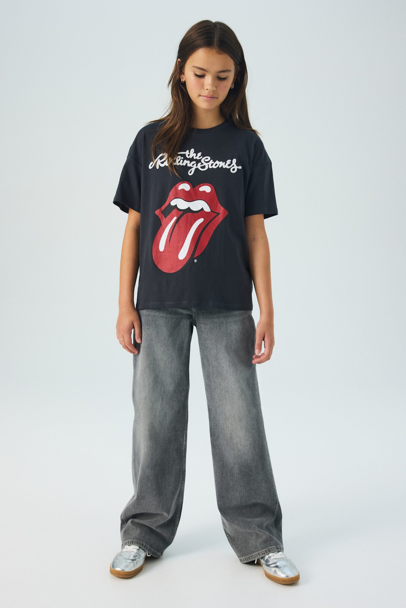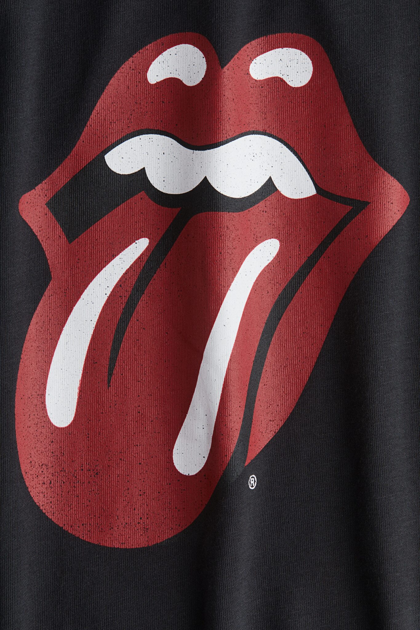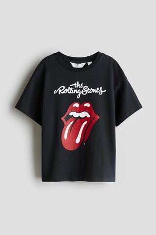 Футболка свободного кроя из мягкого хлопкового трикотажа с принтом, круглым вырезом, ребристой отделкой и спущенными плечами.
