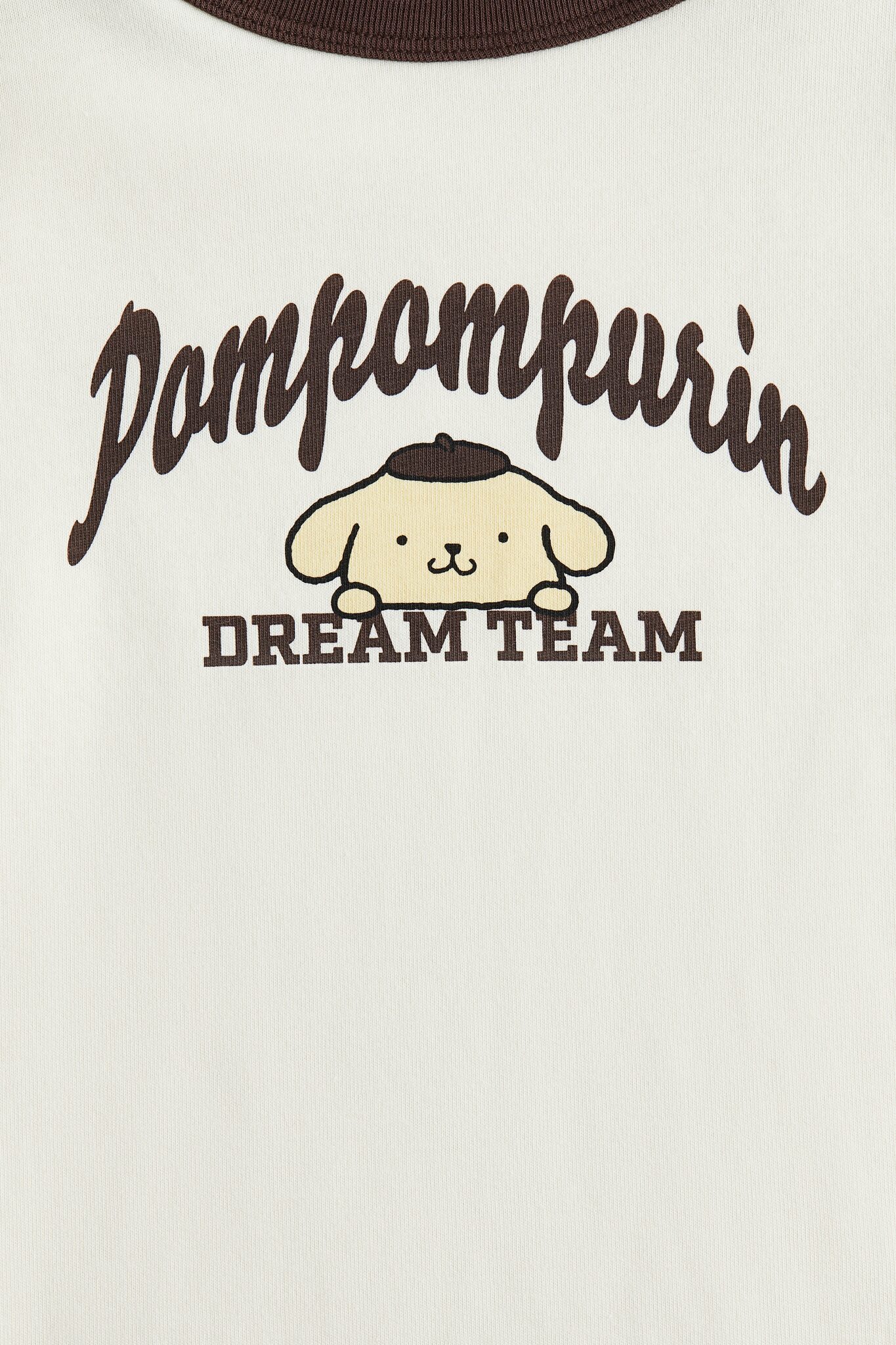Футболка из мягкого хлопкового трикотажа с принтом. Круглый вырез с ребристым краем и короткие рукава.