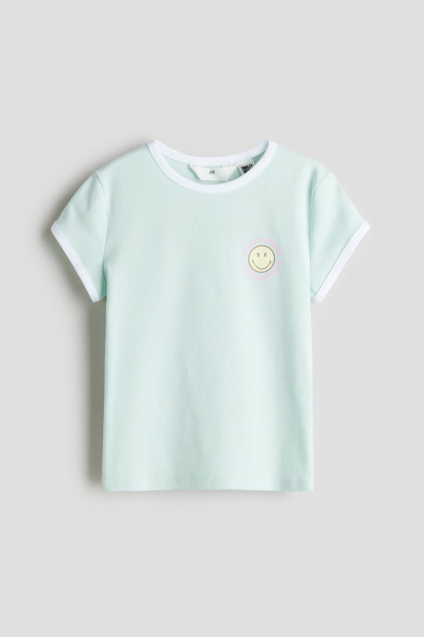 Футболка с короткими рукавами из мягкого хлопкового трикотажа с красочным принтом спереди и круглым вырезом.