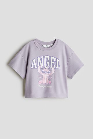Футболка свободного кроя из лёгкого принтованного трикотажного полотна. Круглый вырез горловины с ребристым краем, спущенная линия плеча и короткие рукава.
