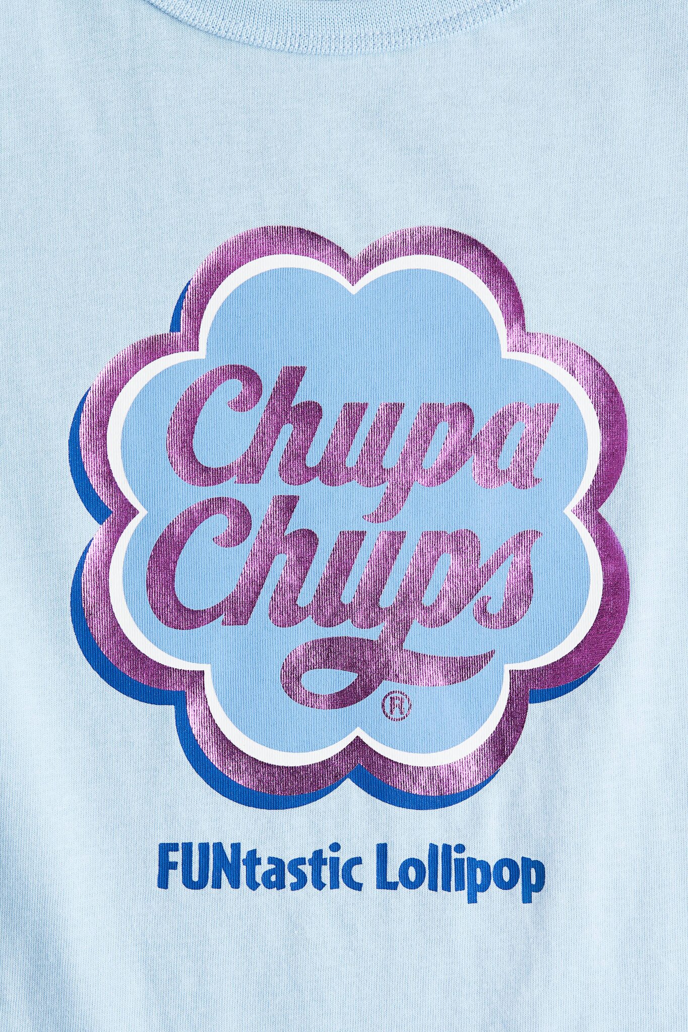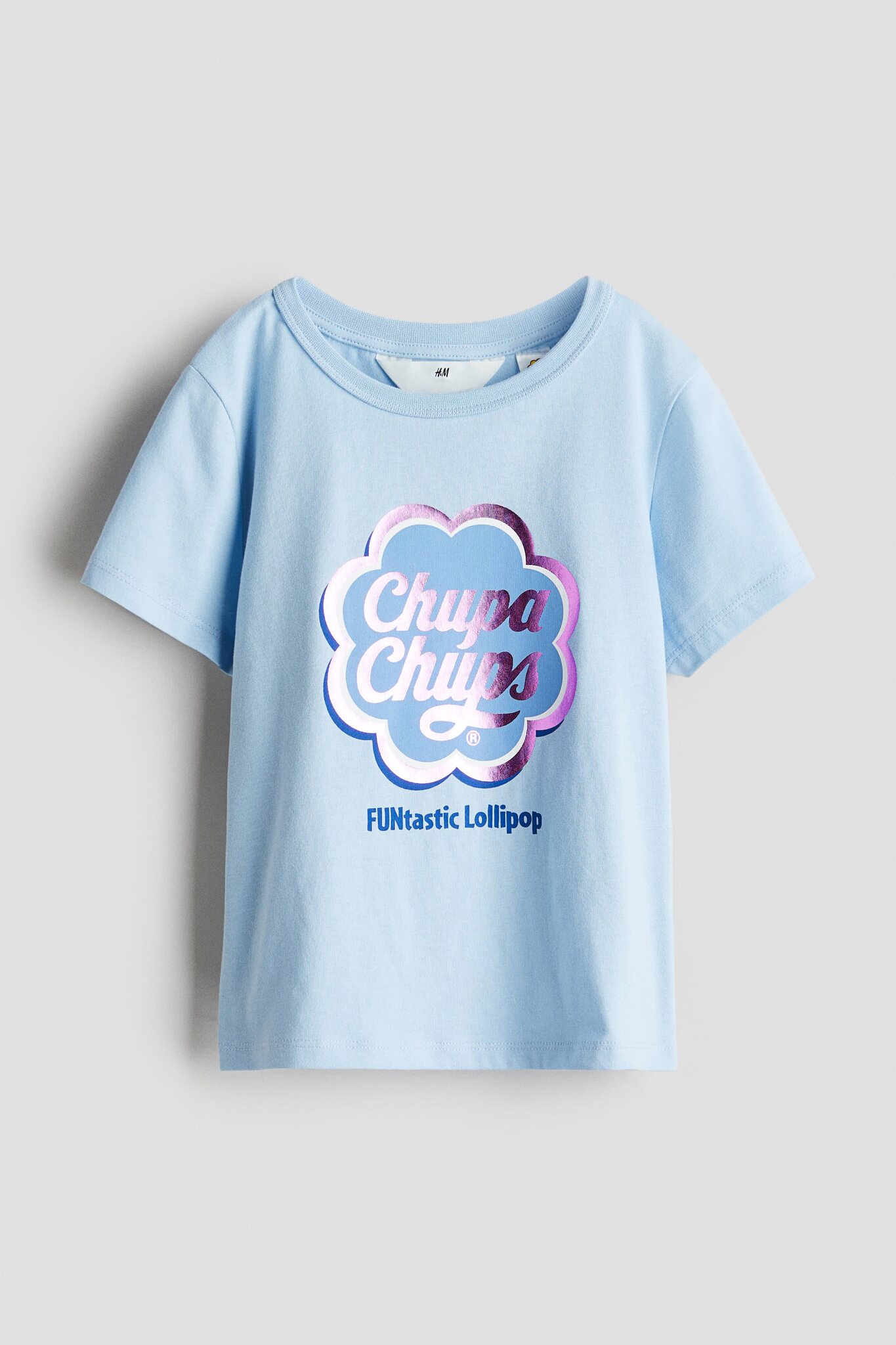 Футболка из мягкого хлопкового трикотажа с принтом. Круглый вырез с ребристым краем и короткие рукава.
