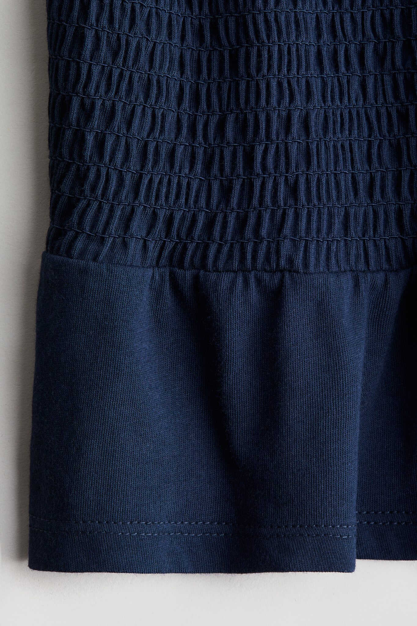 Топ с короткими рукавами из мягкого хлопкового трикотажа, сборкой спереди, круглым вырезом и баской.