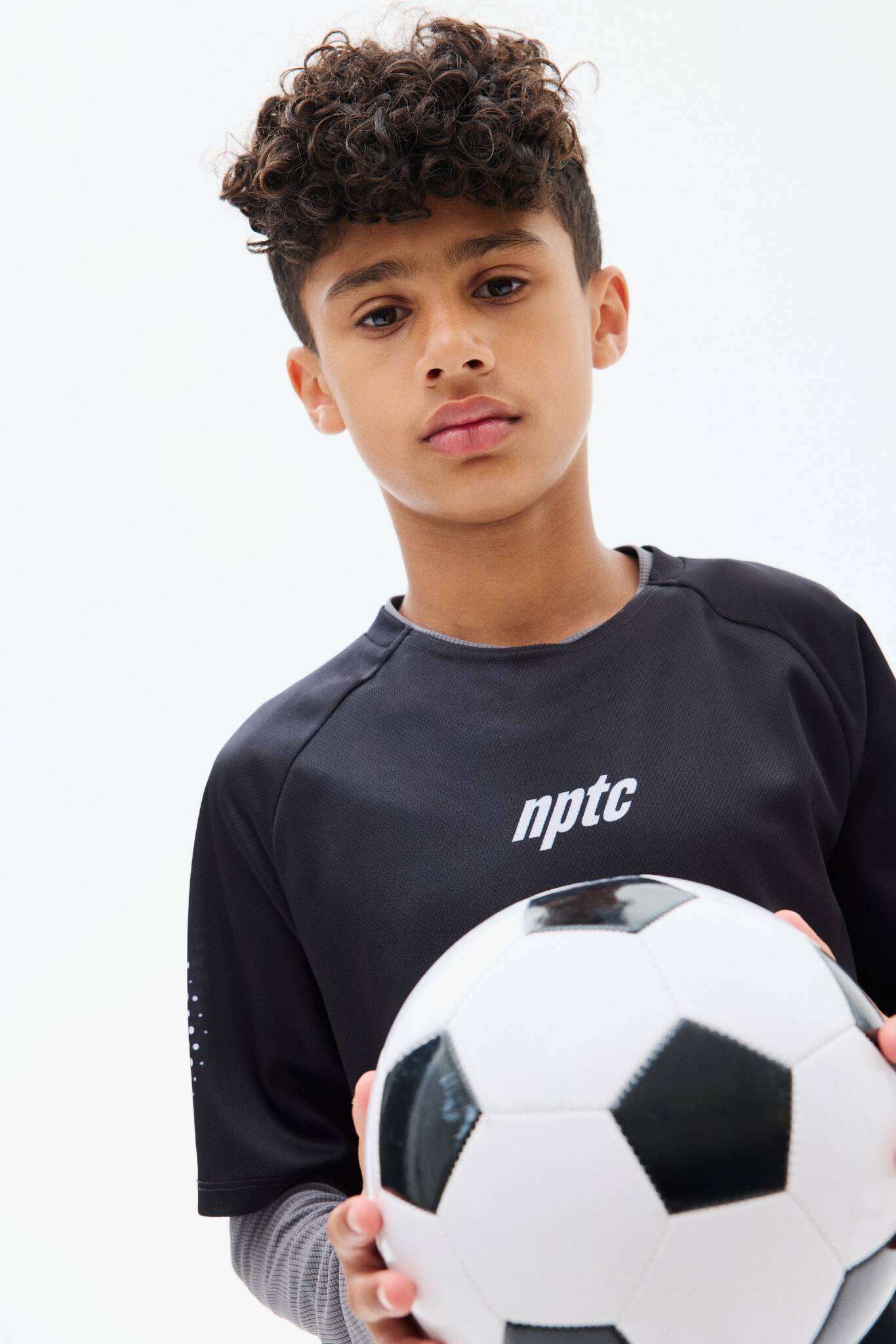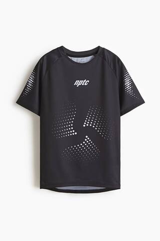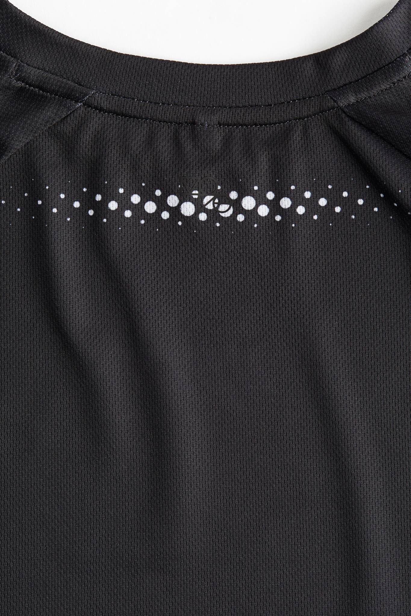 Спортивный топ из функциональной ткани с технологией DryMove™, которая отводит влагу от кожи, сохраняя ощущение комфорта и сухости во время движения. Классический крой, круглая горловина и короткие рукава реглан для минимизации натирания от швов. Удлинённая спинка и закруглённый подол.