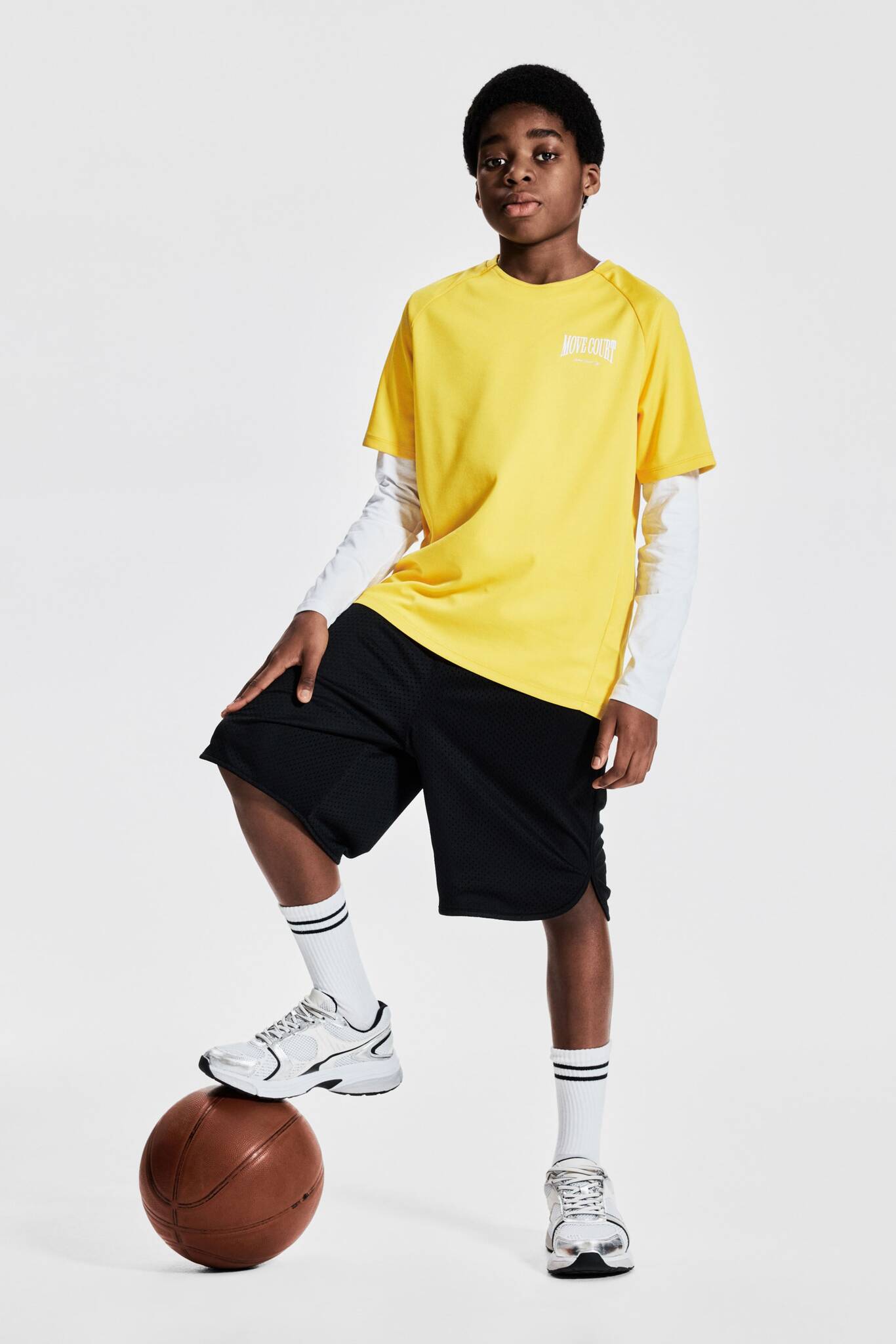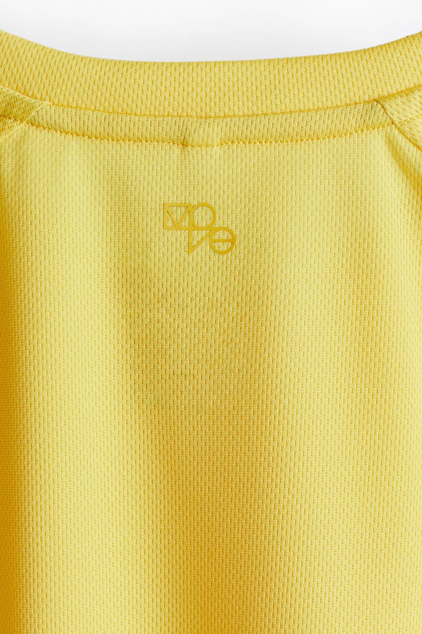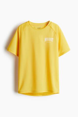 Спортивный топ из функциональной ткани с технологией DryMove™, которая отводит влагу от кожи, сохраняя ощущение комфорта и сухости во время движения. Классический крой, круглая горловина и короткие рукава реглан для минимизации натирания от швов. Удлинённая спинка и закруглённый подол.