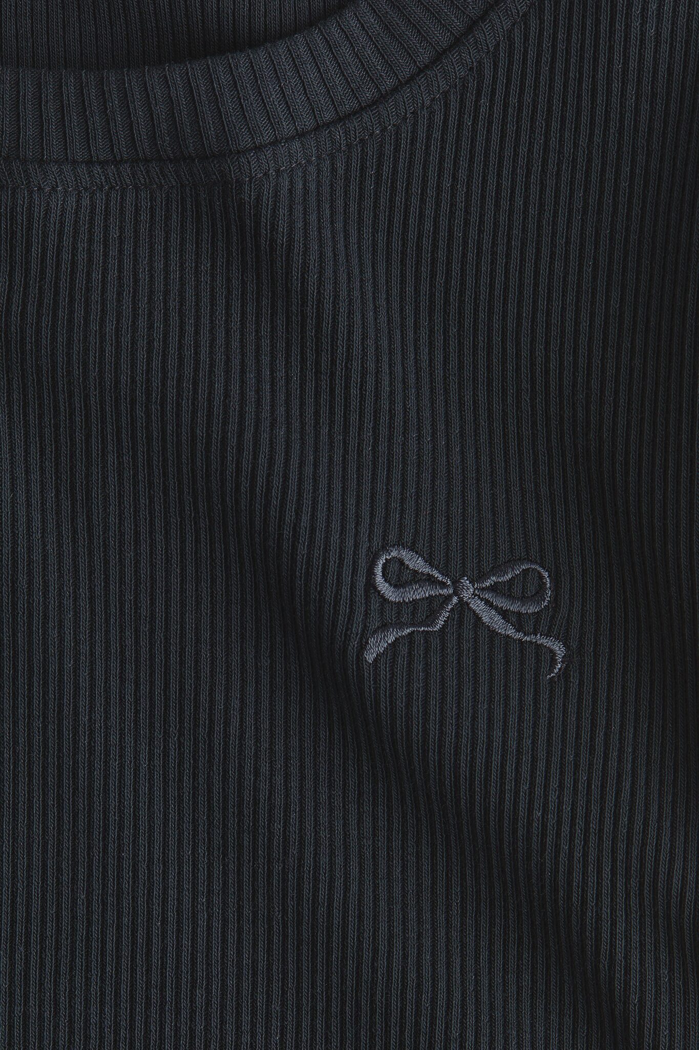 Футболка из хлопкового трикотажа в рубчик с круглым вырезом, небольшим вышитым мотивом спереди и рукавами-крылышками.