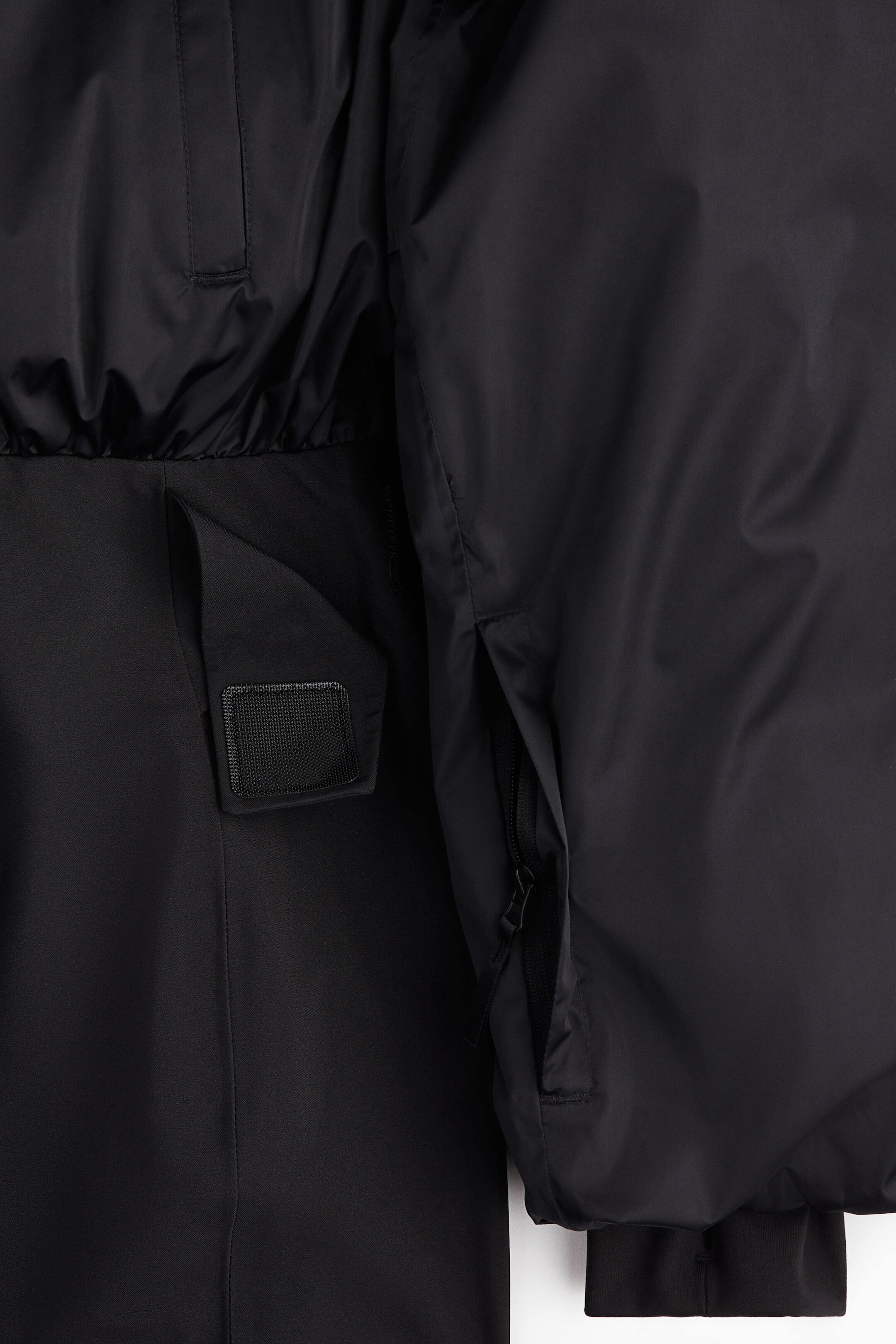 Горнолыжный костюм из ветро- и водоотталкивающей функциональной ткани с технологией ThermoMove™, которая сохраняет тепло в холодную погоду. Капюшон затягивается эластичным шнурком спереди. Молния проходит от макушки до затылка, позволяя убрать капюшон в воротник. Внутри: воротник-стойка на молнии из стеганой ткани с подкладкой, молния спереди, спущенные плечи и внутренние манжеты с прорезями для больших пальцев. Карманы для рук на молнии, карман на рукаве на молнии и внутренний карман на молнии с тряпочкой для горнолыжных очков. Штаны выполнены из ткани StormMove™ для защиты от ветра и дождя, дышащей в любую погоду, с герметичными швами. Талия регулируется липучкой, слегка свободные штанины с усиленными секциями, а подол оснащен снегозащитными гетрами и регулируемыми липучками для плотного прилегания к лыжным ботинкам. На подкладке. Оснащено технологией RECCO®, которая гарантирует, что спасатели вас увидят.