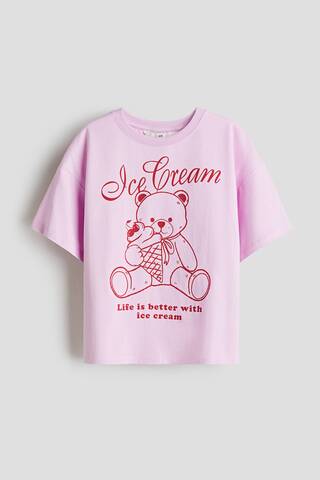 H&M Хлопковая футболка оверсайз с принтом, розовый