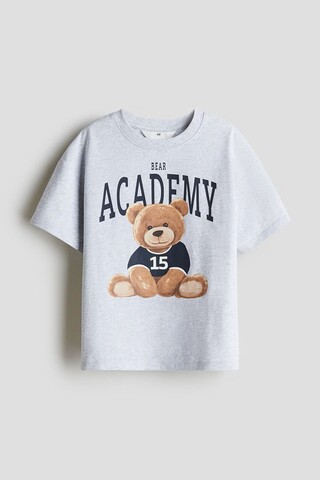 H&M Хлопковая футболка оверсайз с принтом, серый меланж