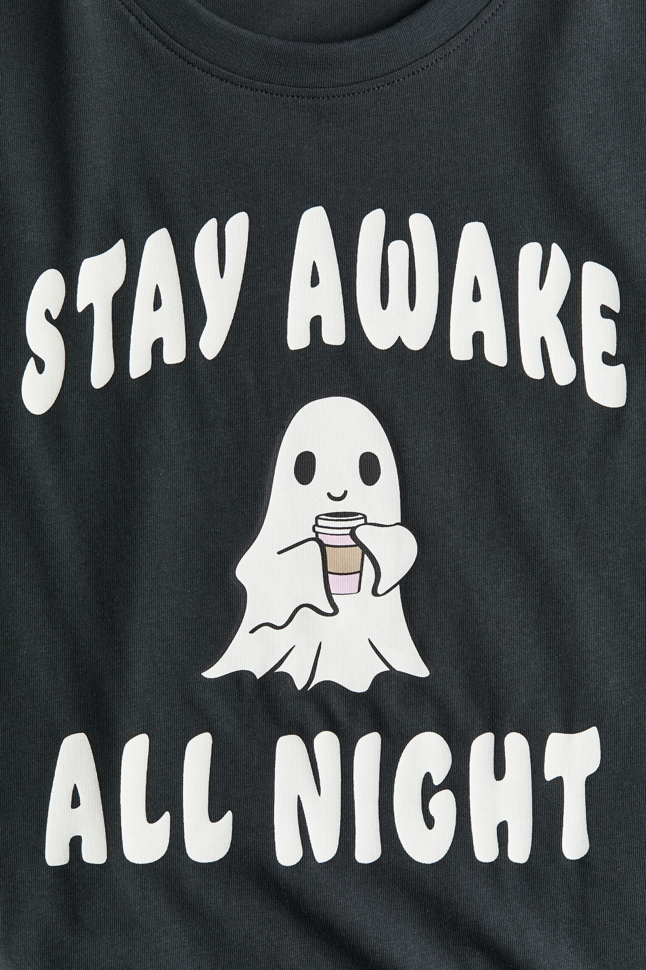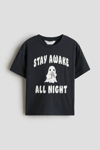 H&M Хлопковая футболка оверсайз с принтом, темно-серый