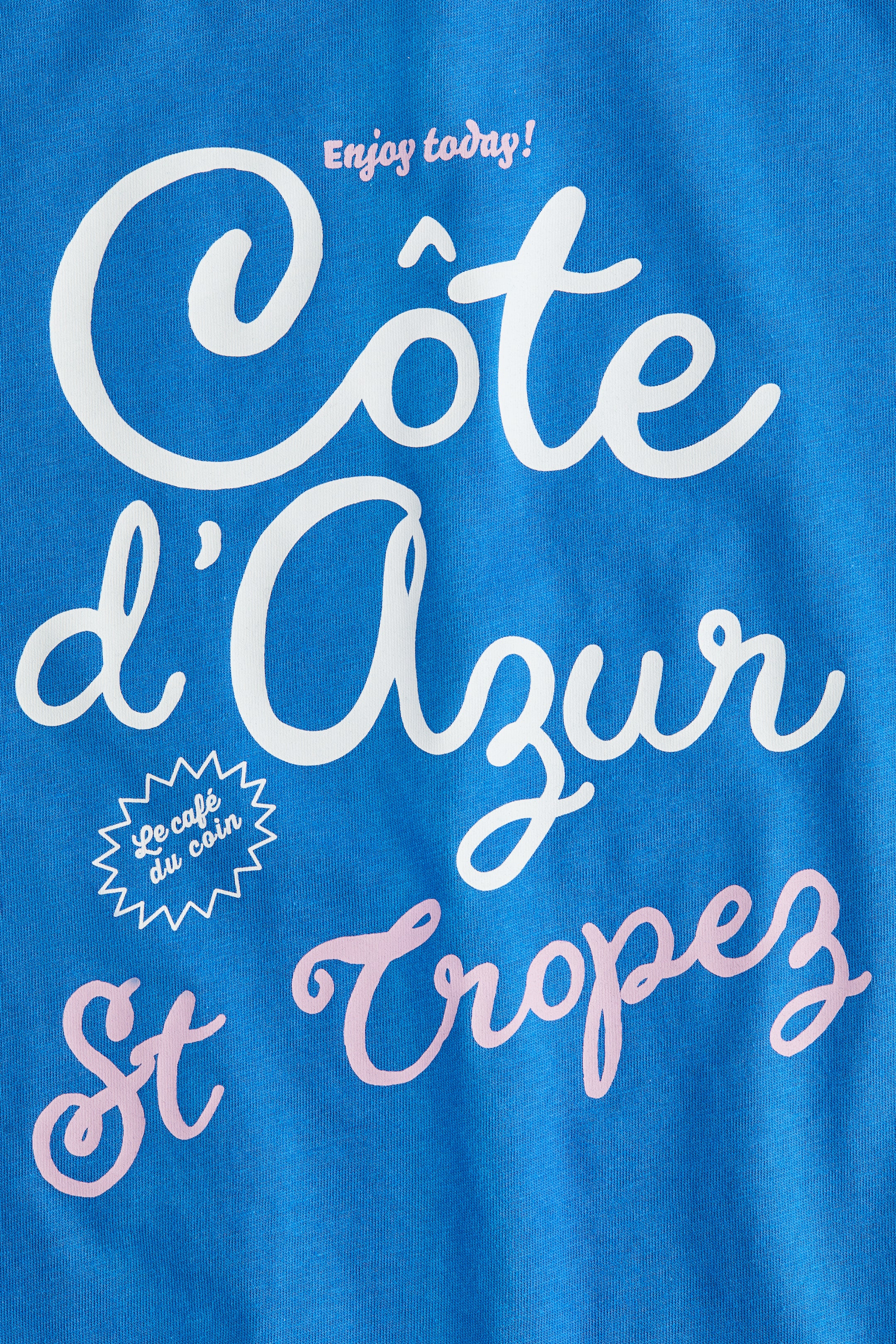 H&M Хлопковая футболка оверсайз с принтом, ярко-синий